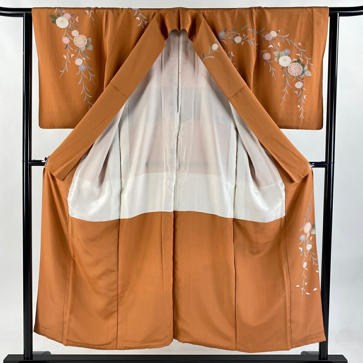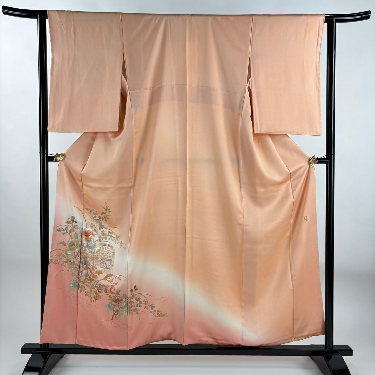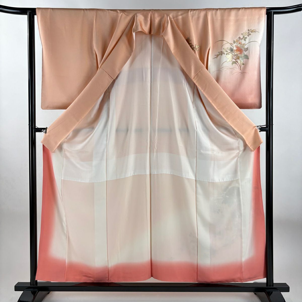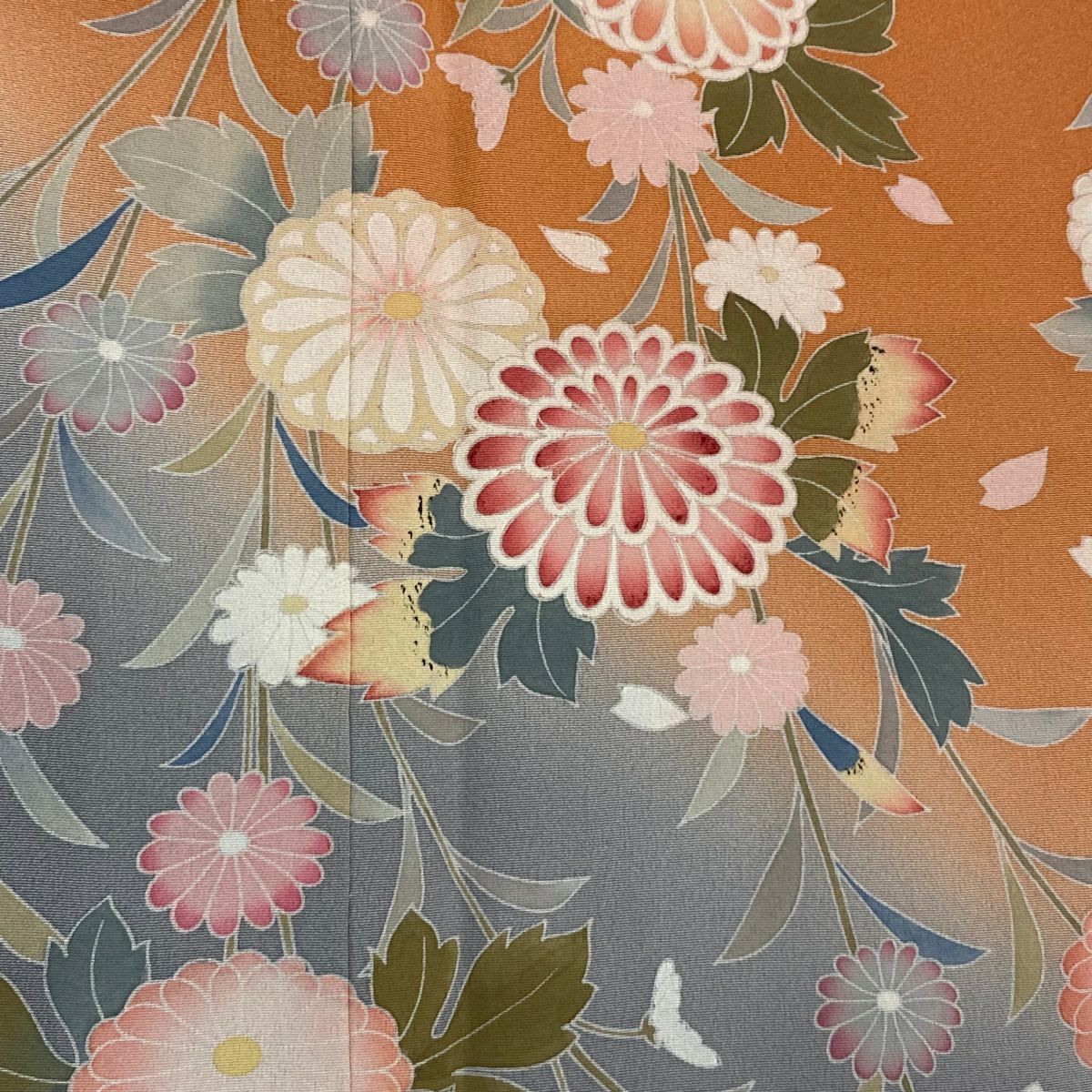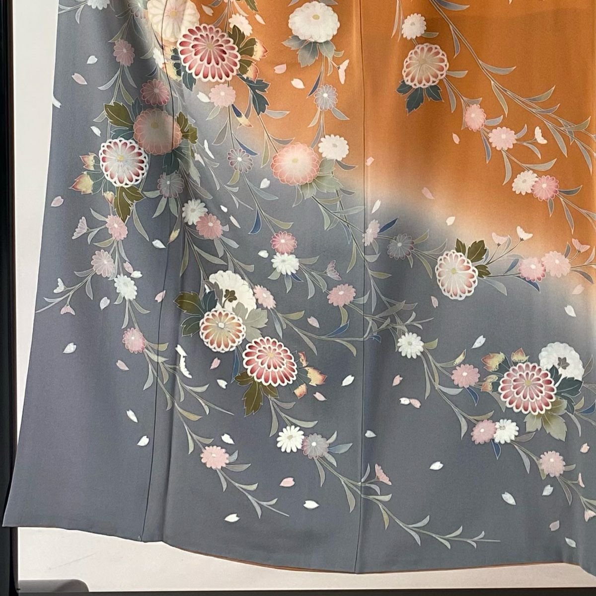 【在庫一掃】 【美品】 訪問着 身丈151.5cm 裄丈63cm S 袷 落款あり 菊 花びら 染め分け ぼかし オレンジ 正絹 名品