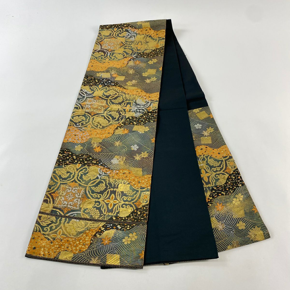 【在庫一掃】 【美品】 袋帯 秀品 華文 波 金糸 箔 金色 六通 正絹