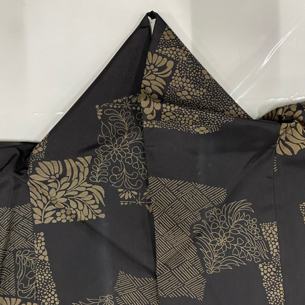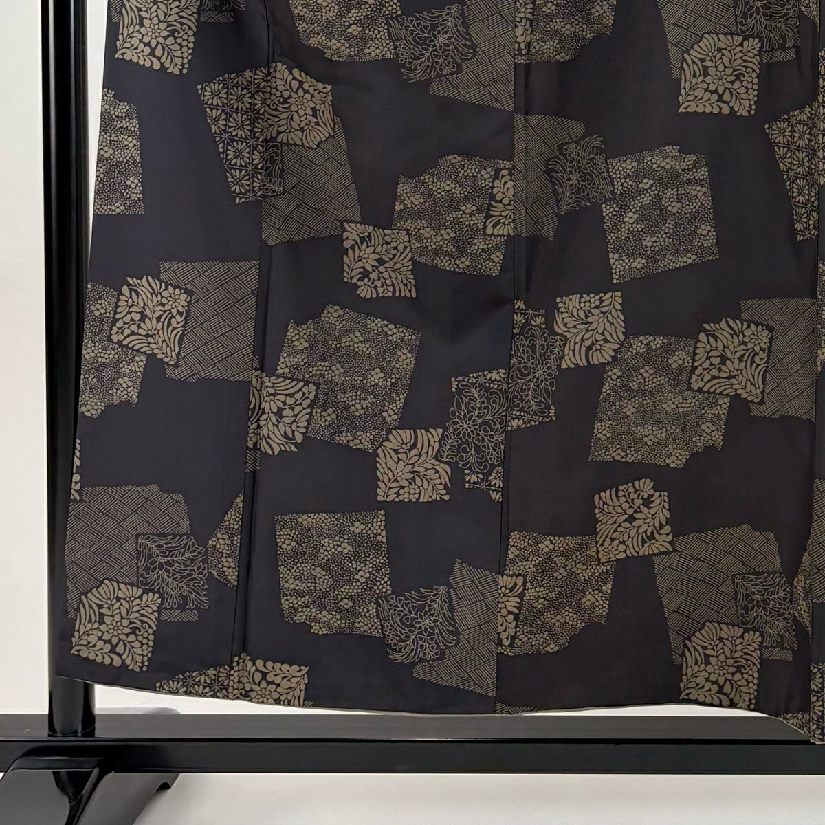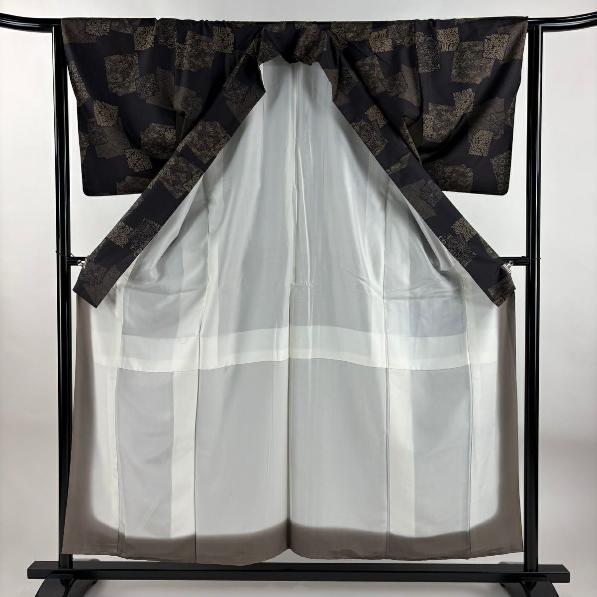 【在庫一掃】 付下げ 身丈156.5cm 裄丈62cm S 袷 紬地 樹木 幾何学模様 黒灰 正絹 秀品