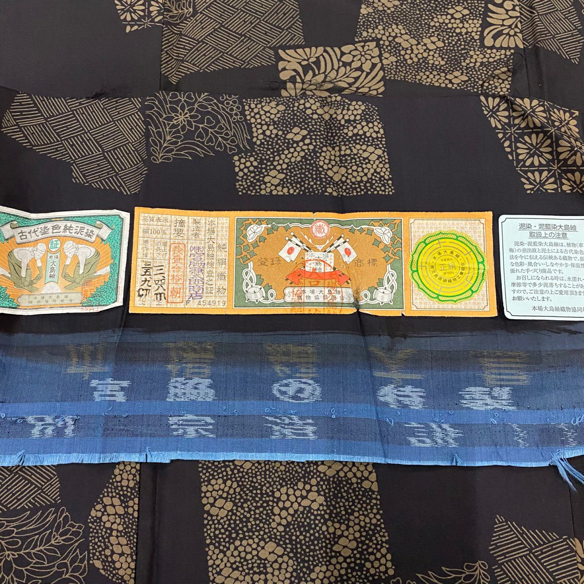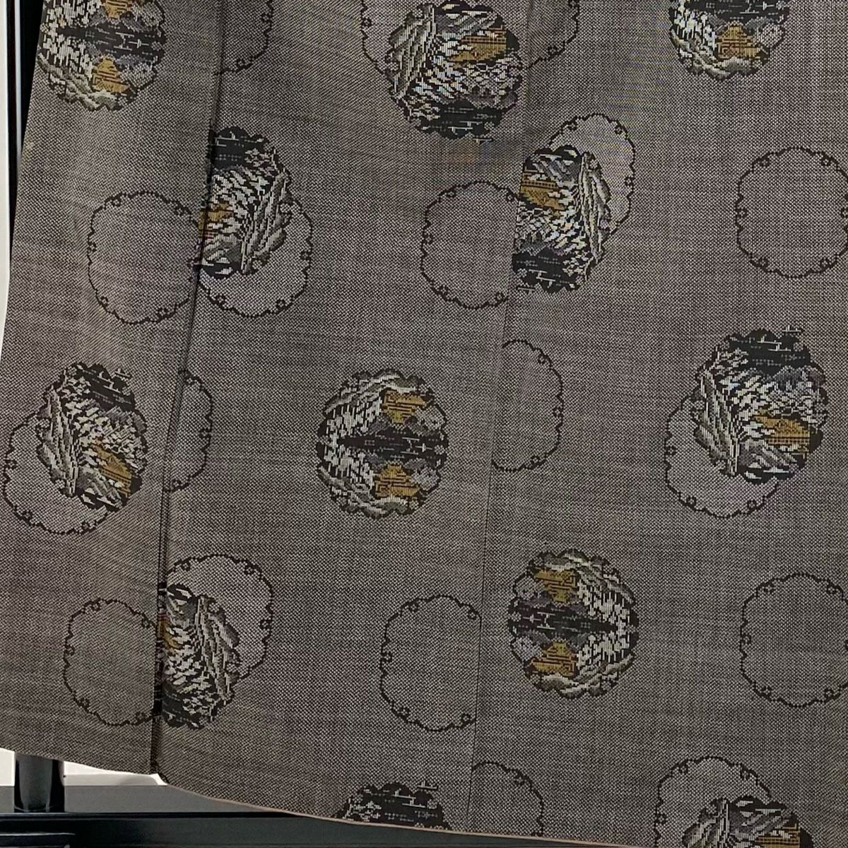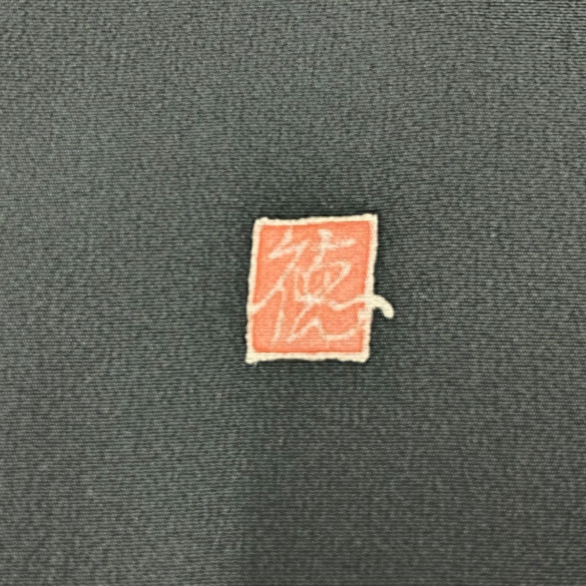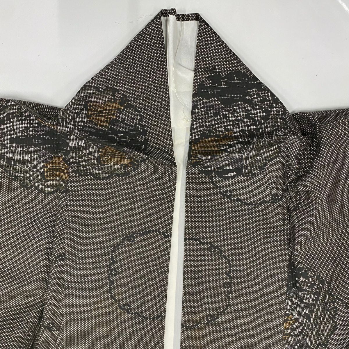 【在庫一掃】 付下げ 身丈156.5cm 裄丈62cm S 袷 紬地 樹木 幾何学模様 黒灰 正絹 秀品