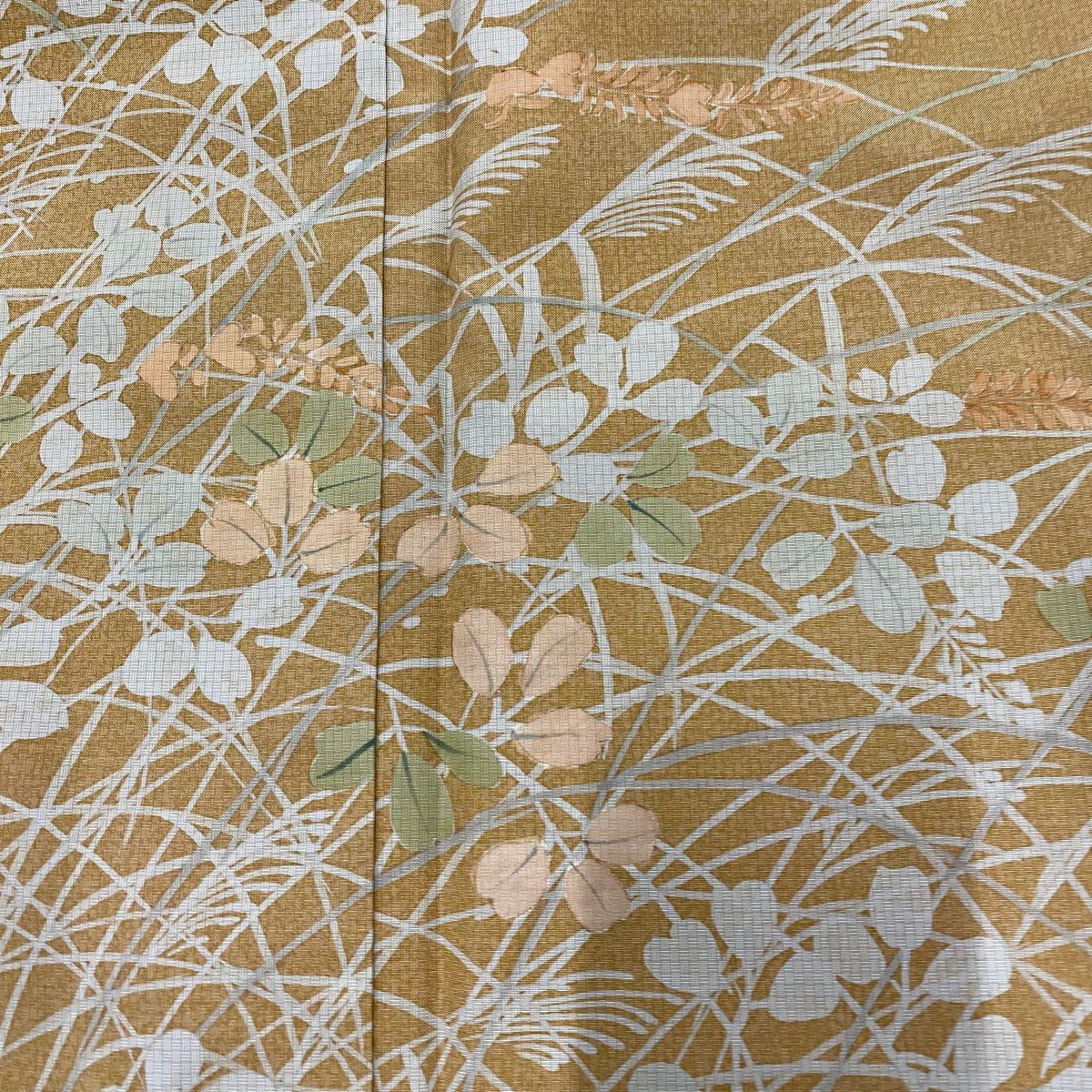 【在庫一掃】 【美品】 袋帯 秀品 鈴乃屋 格子 山吹茶色 全通 正絹