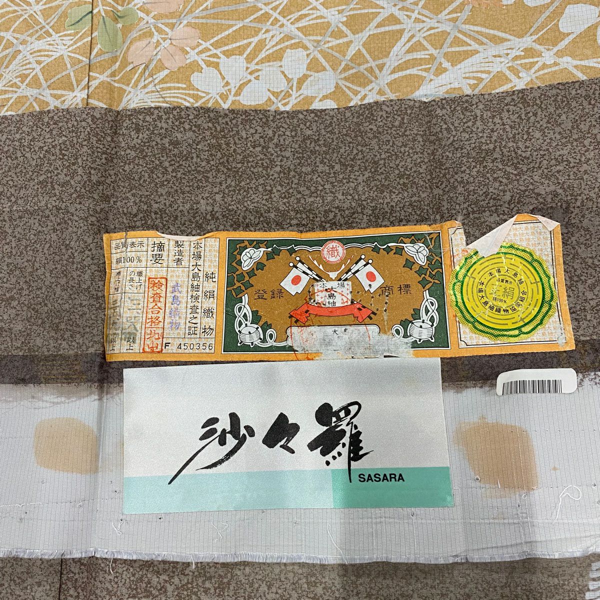 【在庫一掃】 袋帯 秀品 貝桶 草花 刺繍 金彩 茶色 お太鼓柄 正絹