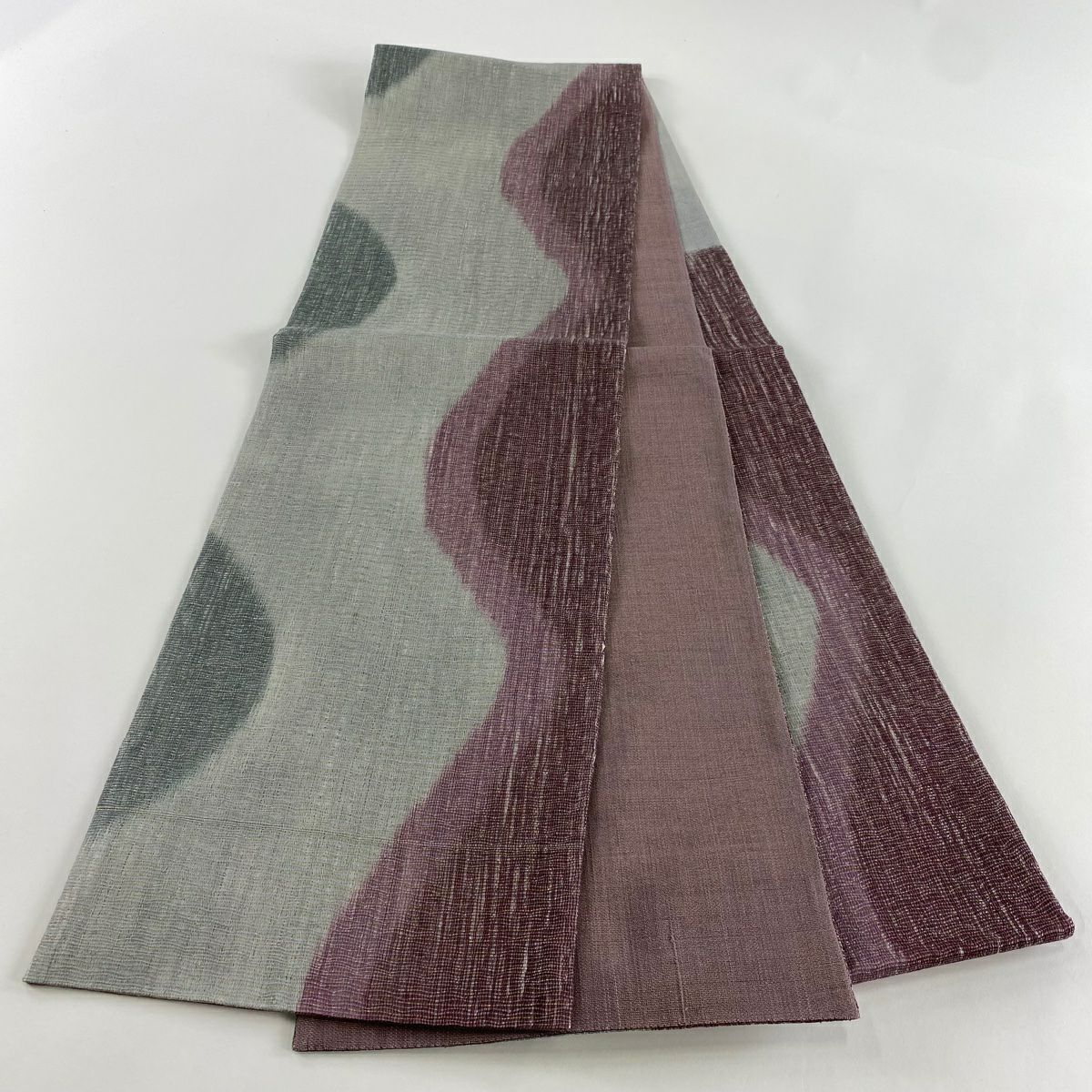 小紋 身丈161cm 裄丈66.5cm M 袷 草花 縦縞 ぼかし 茶紫 正絹 優品