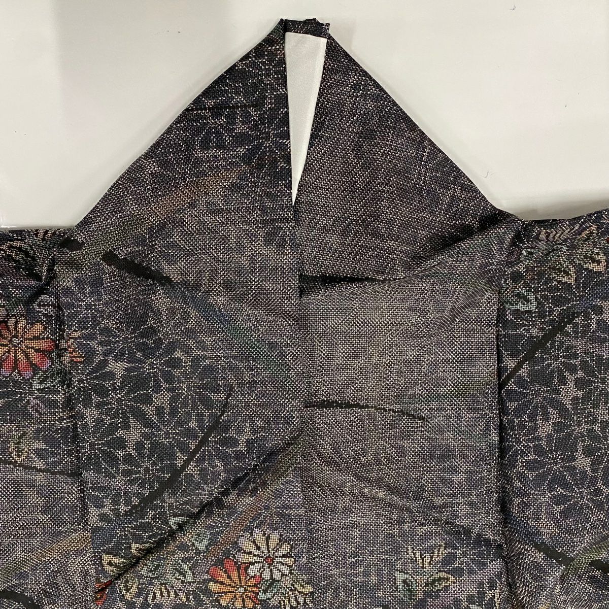 他の画像を見る 【最終値引き】 77%OFF 訪問着 身丈157.5cm 裄丈63cm S 袷 鴛鴦 枝花 螺鈿 金銀彩 灰紫 正絹 秀品 一つ紋 K70 当店通常価格 ¥ 8,800 ¥ 1,980 税込