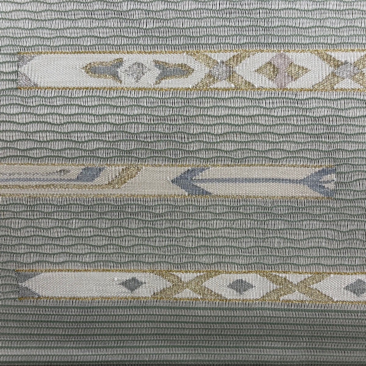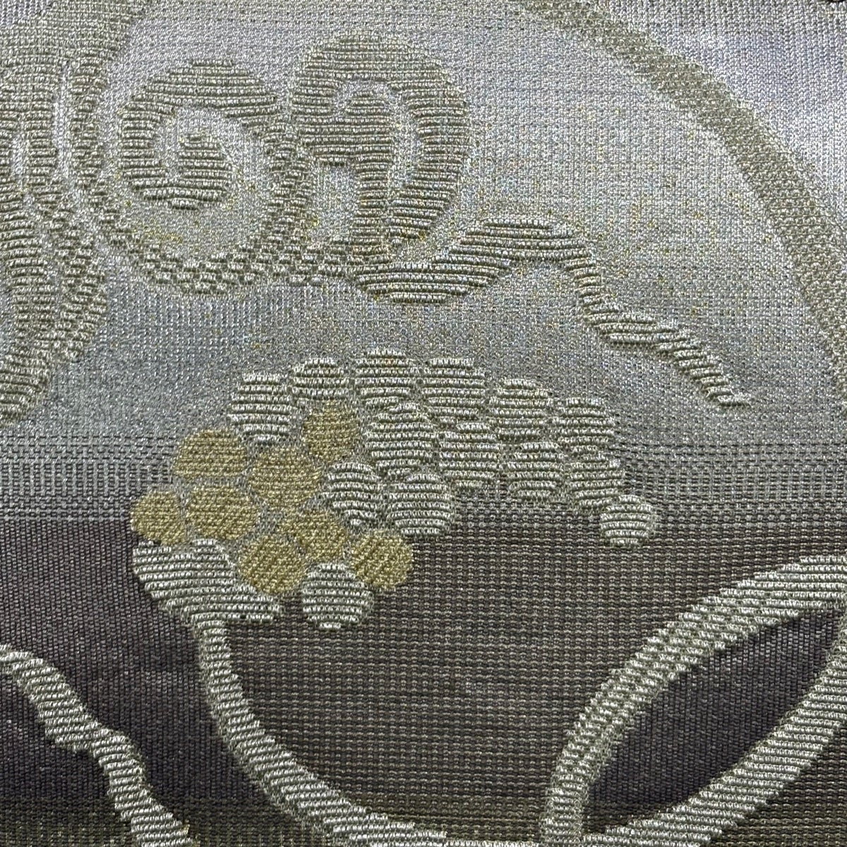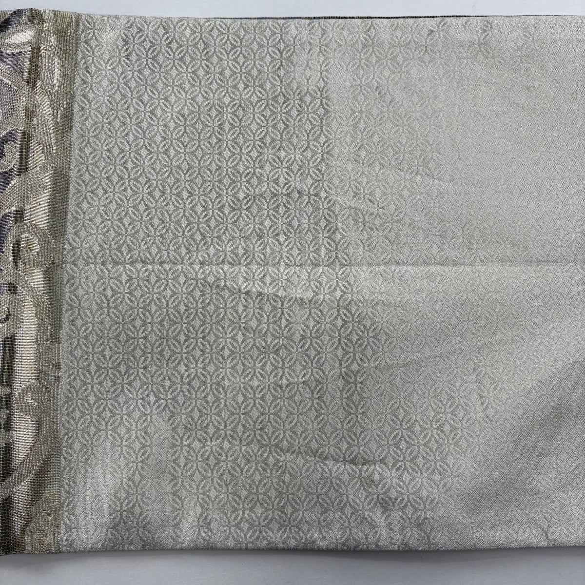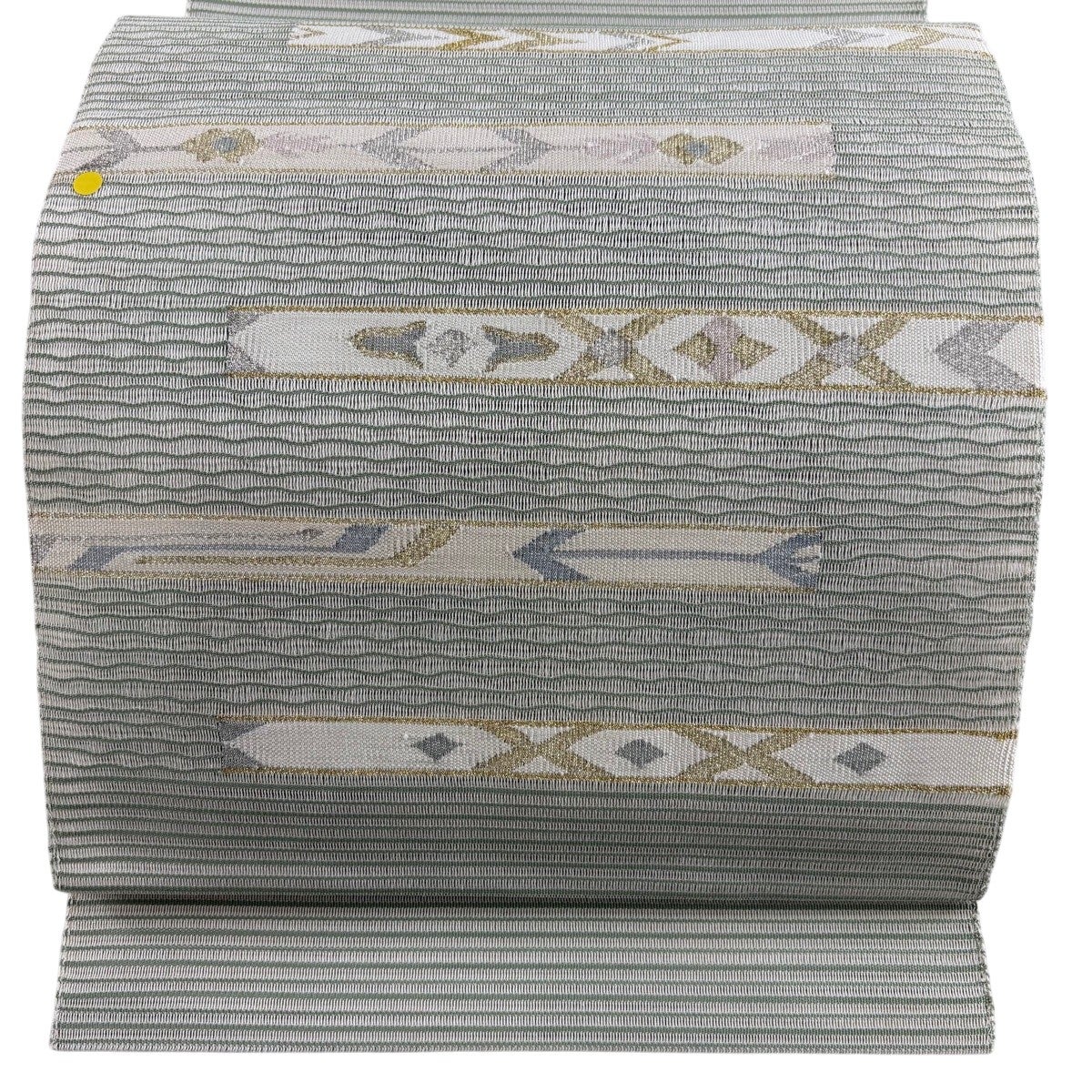 袋帯 秀品 霞 幾何学模様 銀糸 箔 灰色 六通 正絹