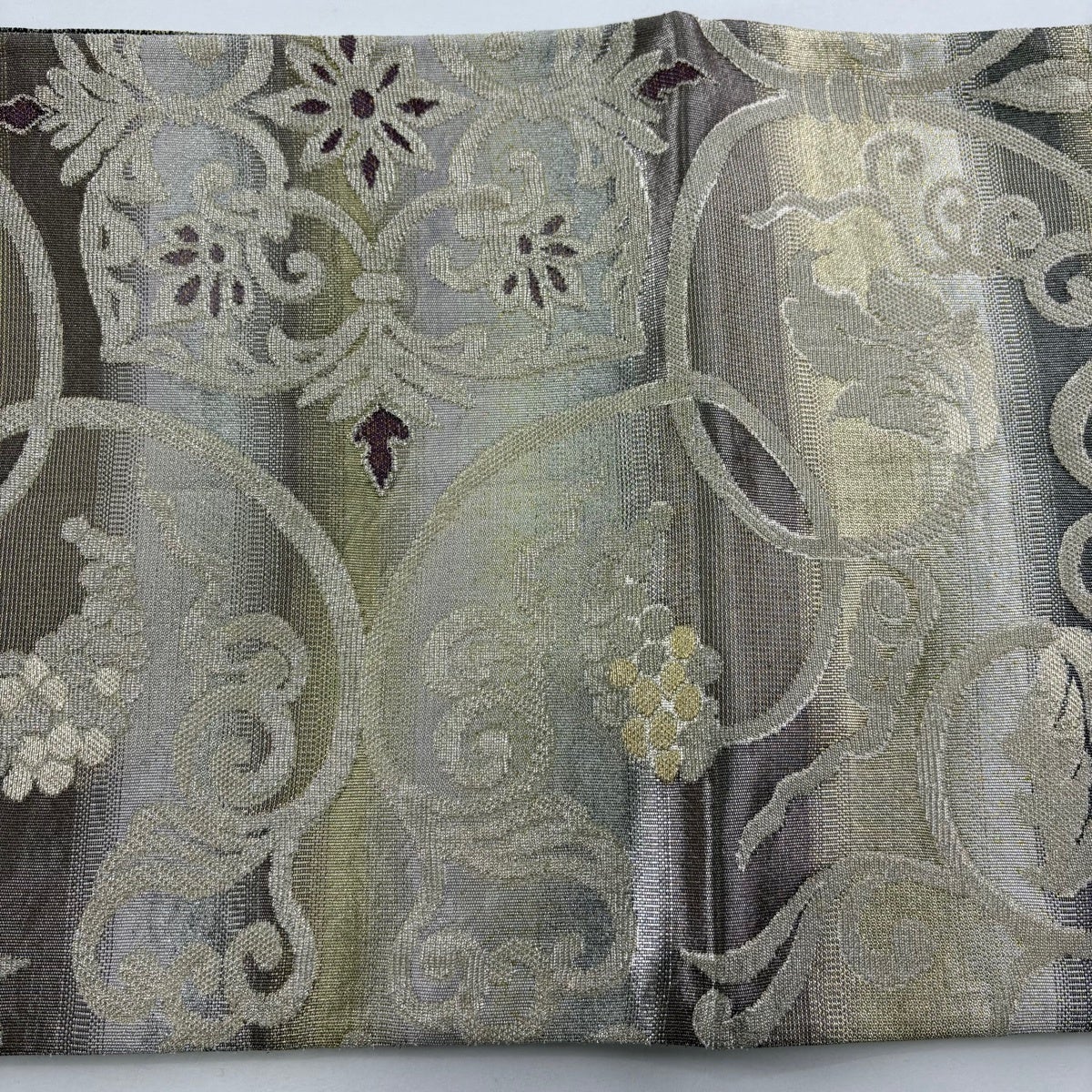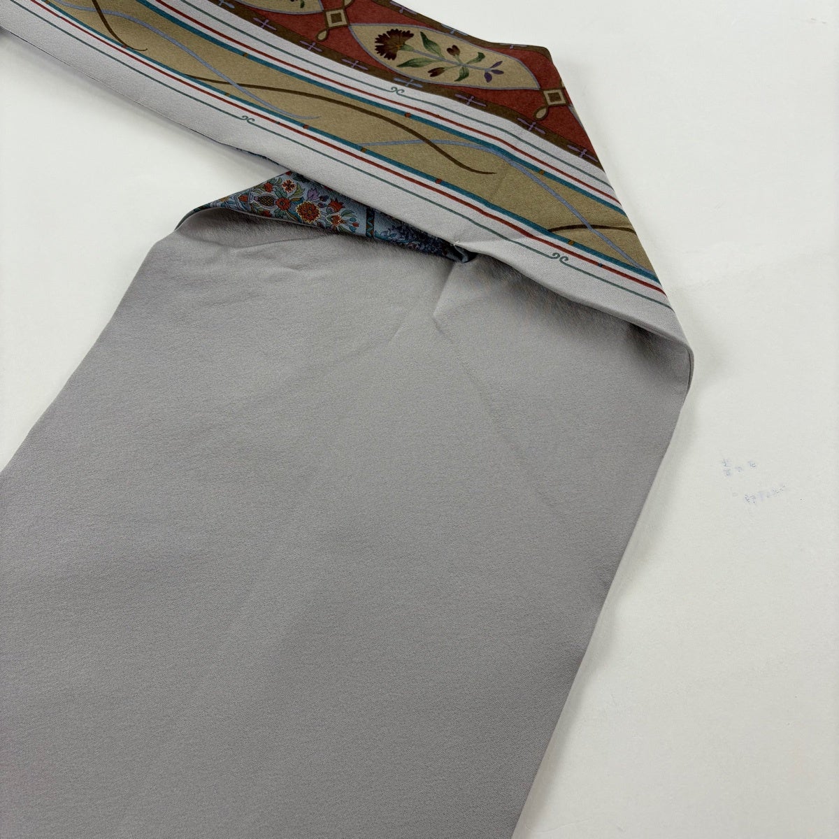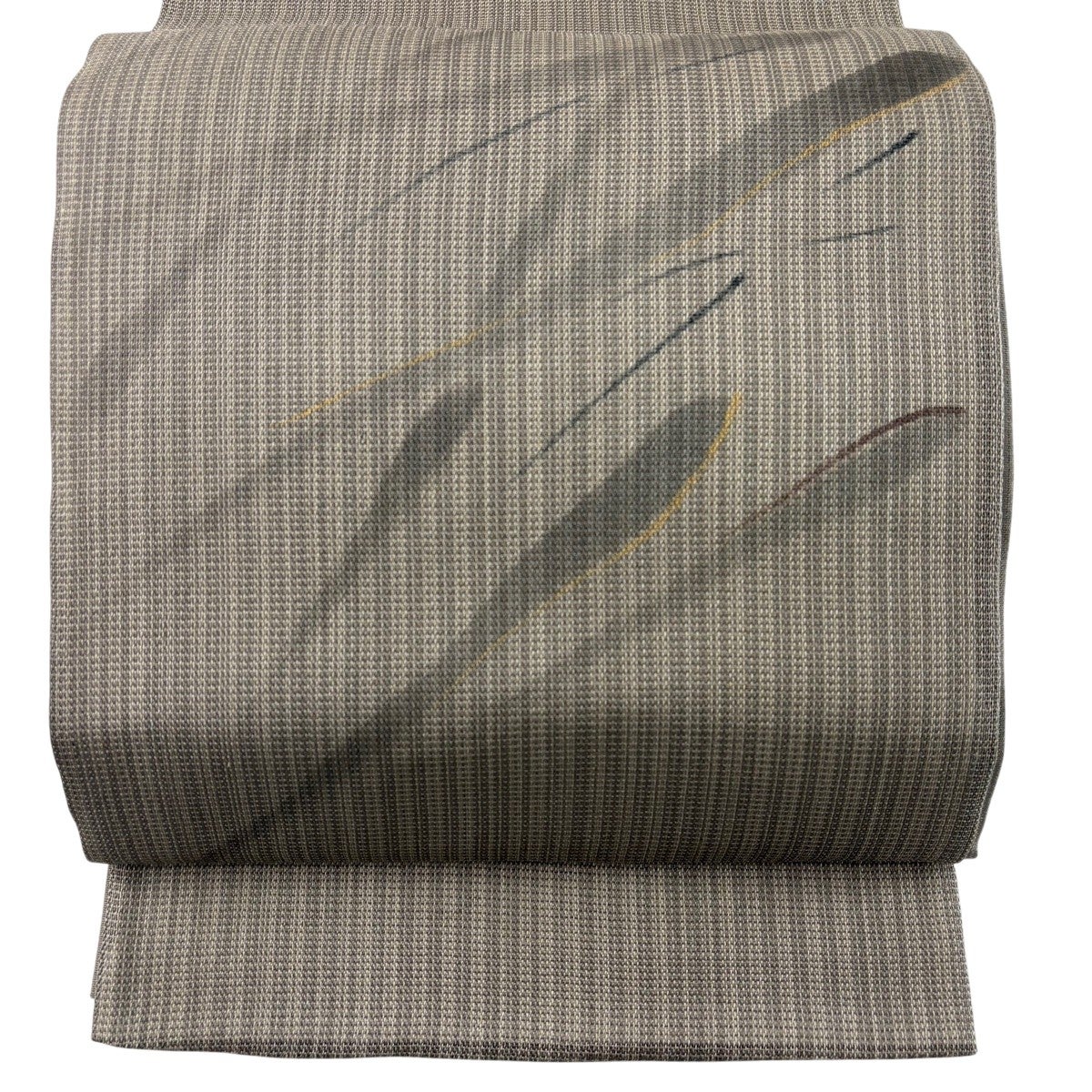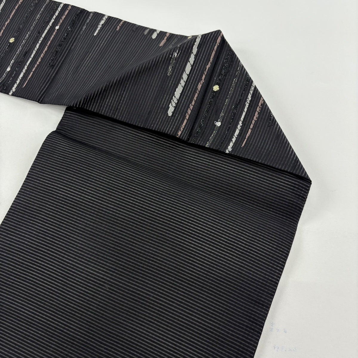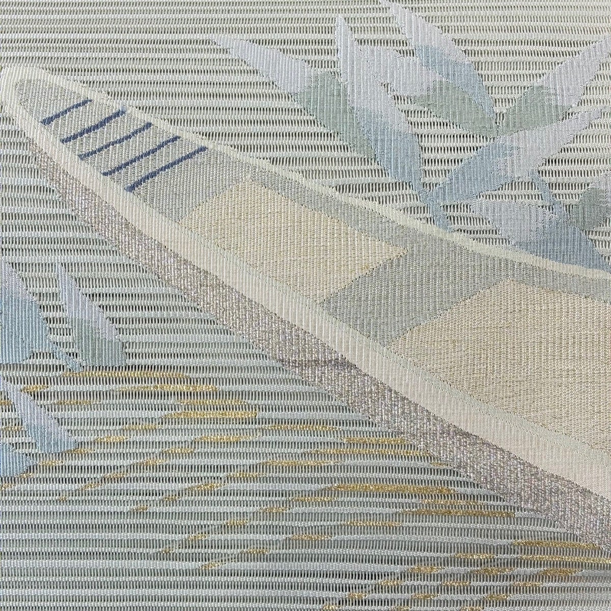 袋帯 秀品 霞 幾何学模様 銀糸 箔 灰色 六通 正絹