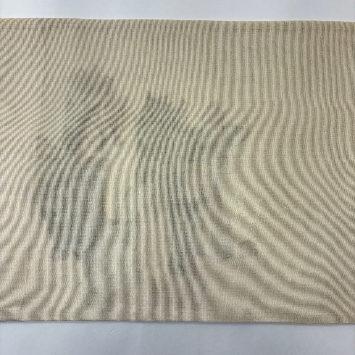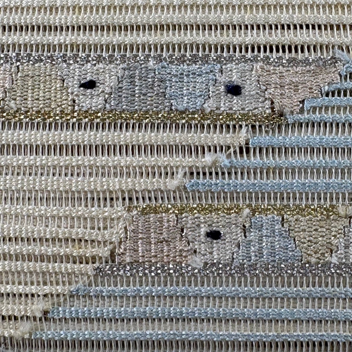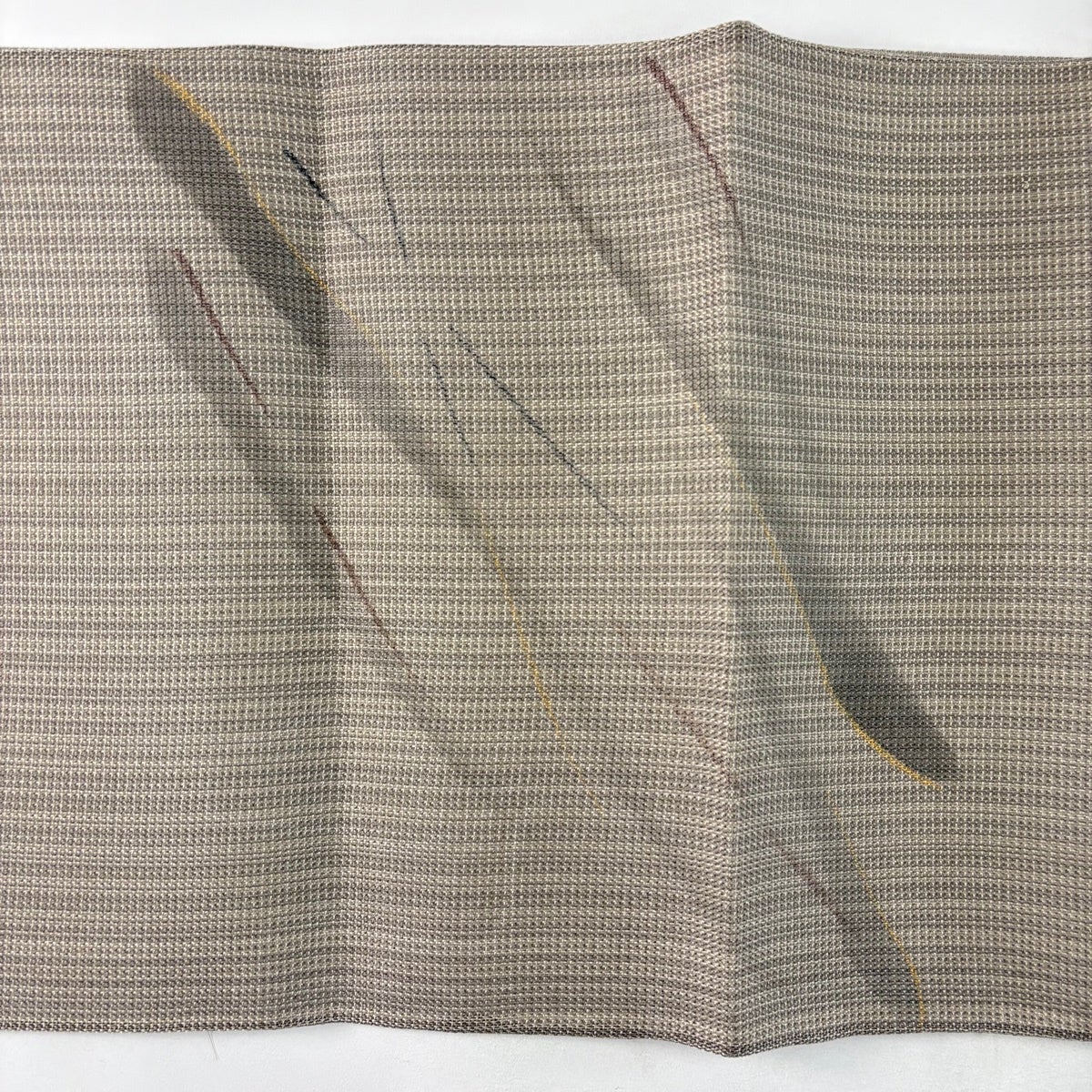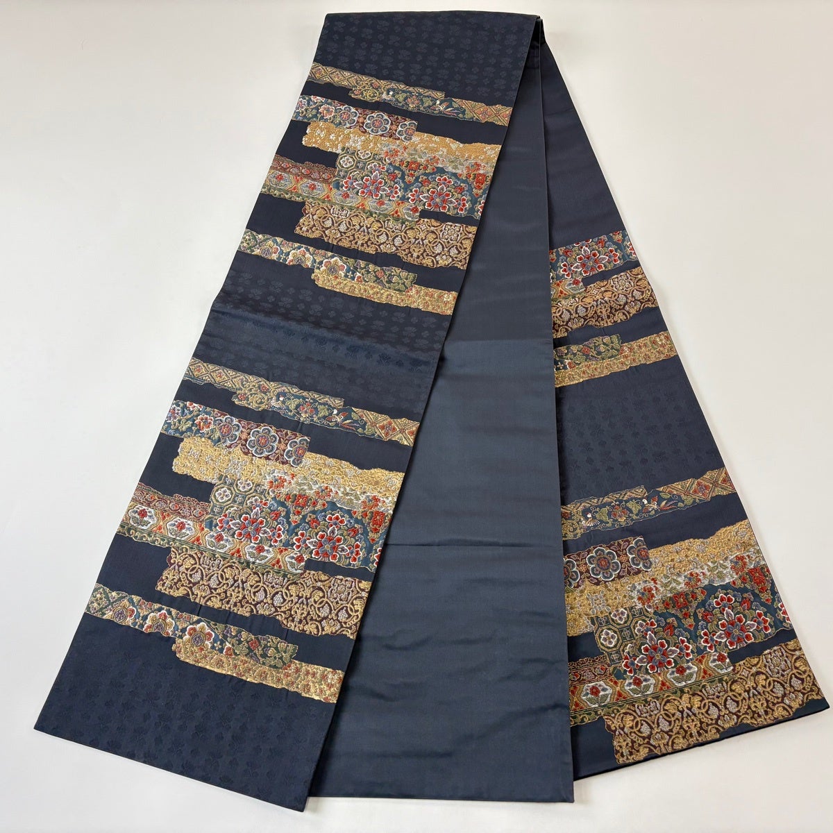 袋帯 秀品 霞 幾何学模様 銀糸 箔 灰色 六通 正絹
