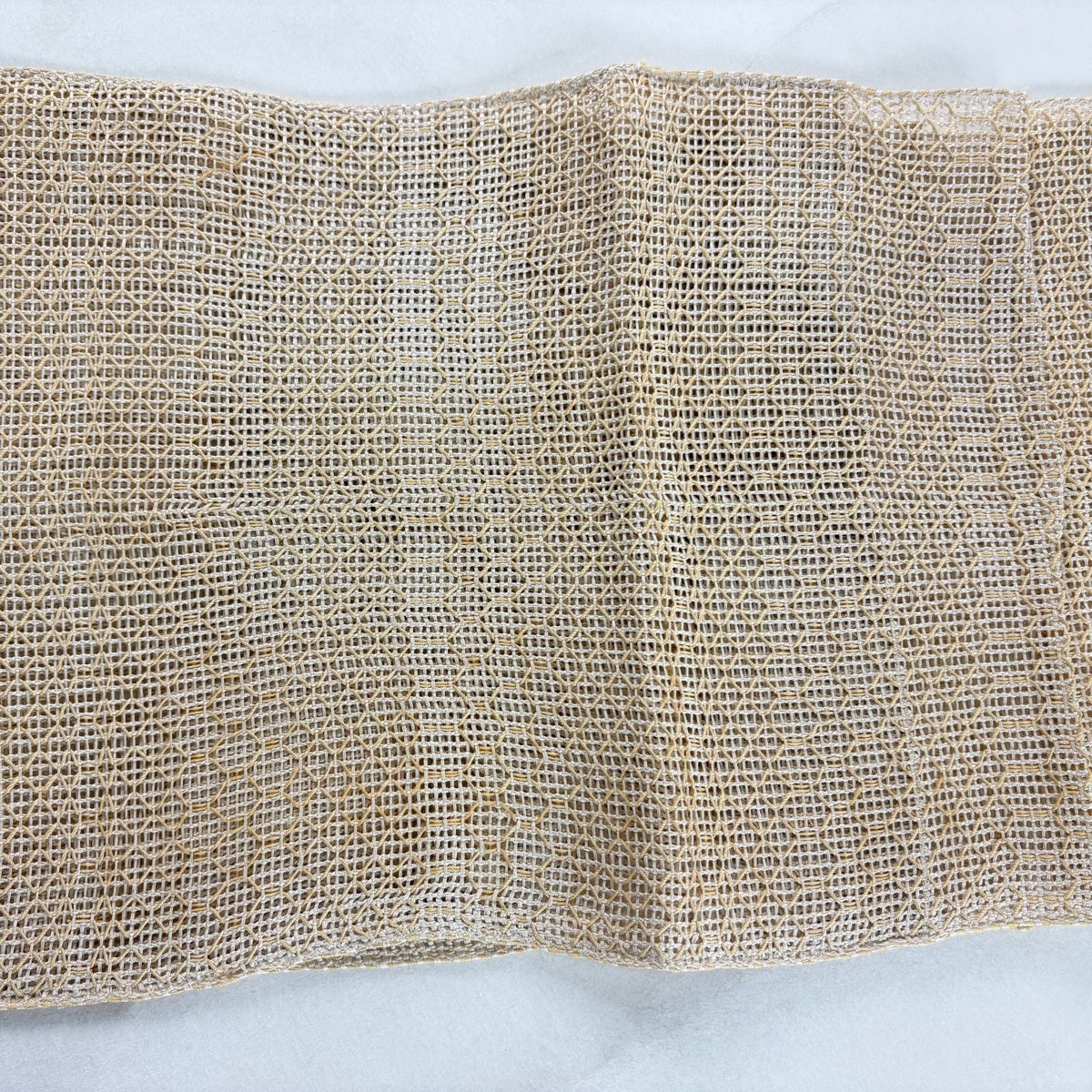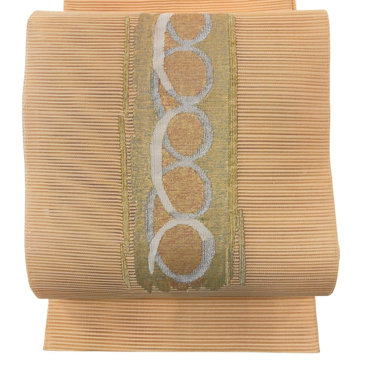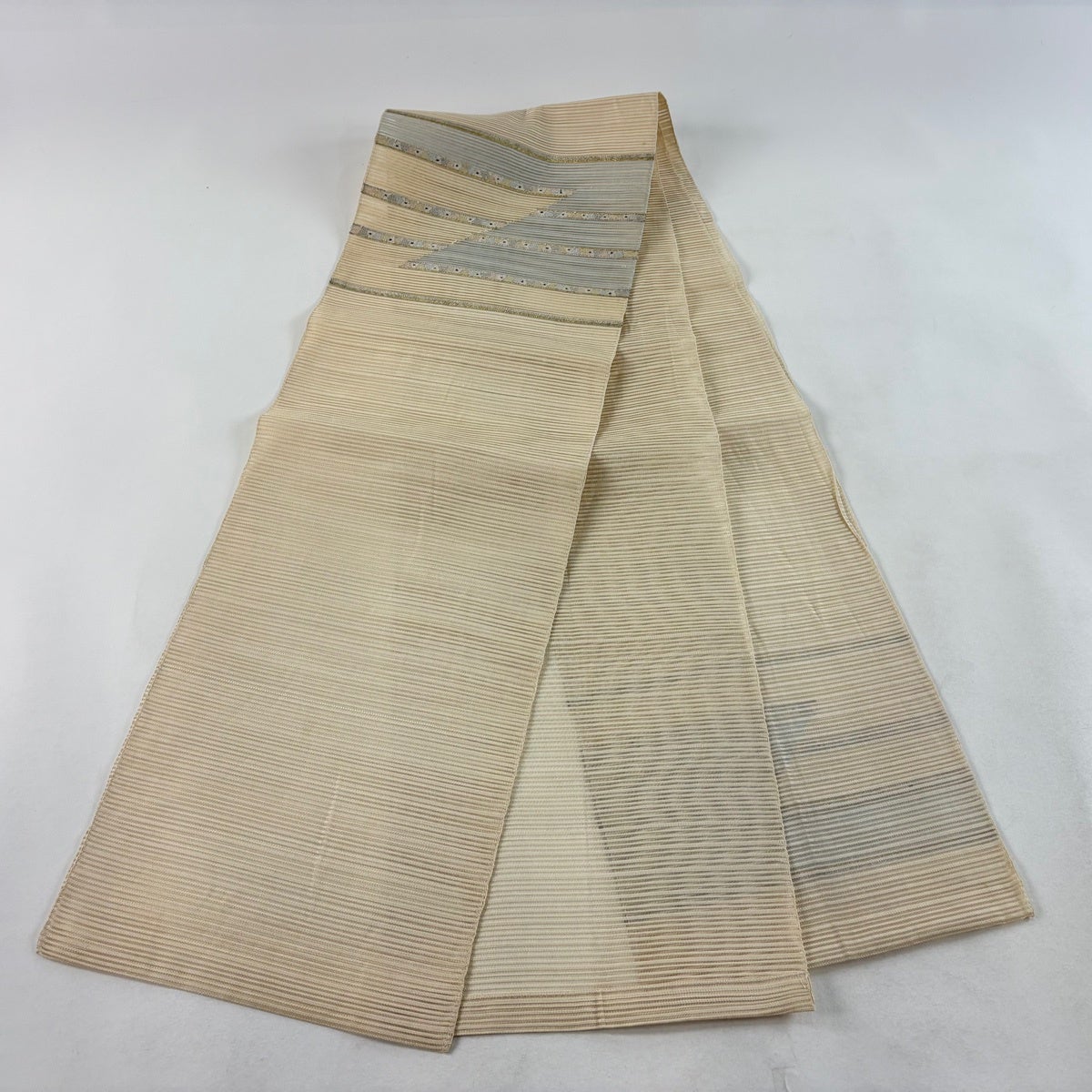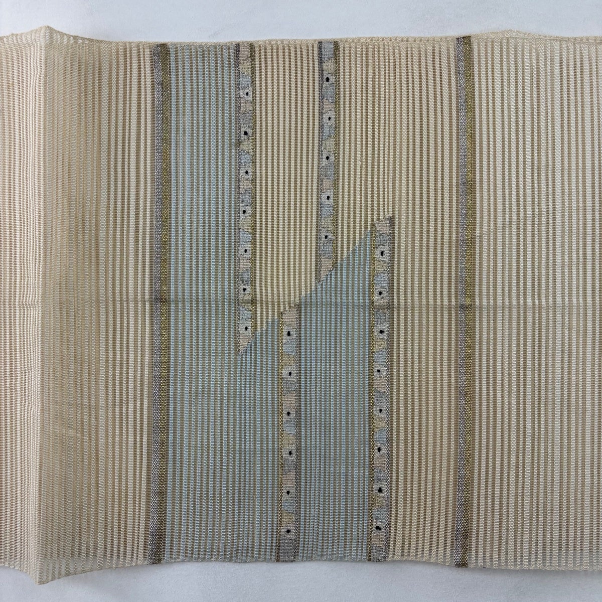 名古屋帯 秀品 夏帯 絽 八寸名古屋帯 縞 幾何学模様 金銀糸 ベージュ 正絹