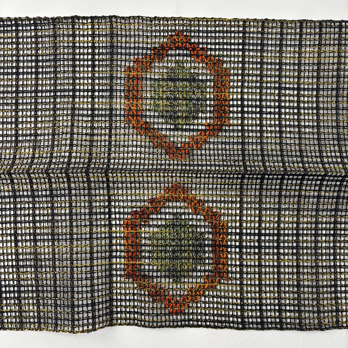 名古屋帯 秀品 夏帯 羅 八寸名古屋帯 幾何学模様 黒 正絹