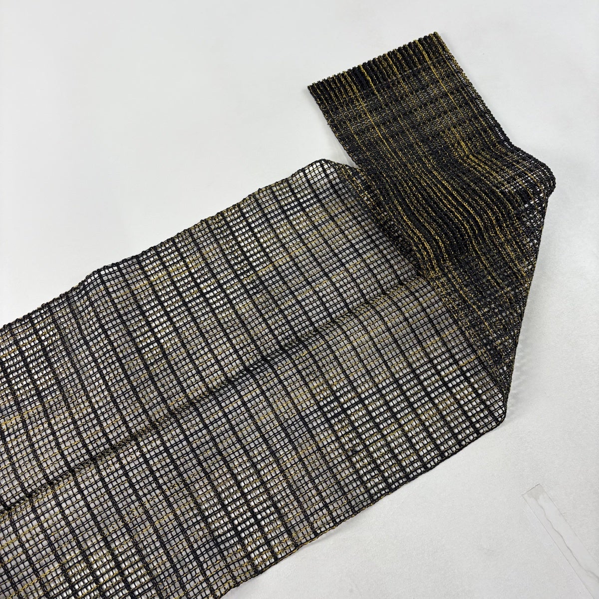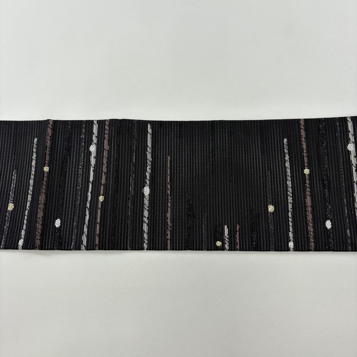 名古屋帯 秀品 夏帯 羅 八寸名古屋帯 松葉仕立て トンネル仕立て 幾何学模様 箔 黒 正絹