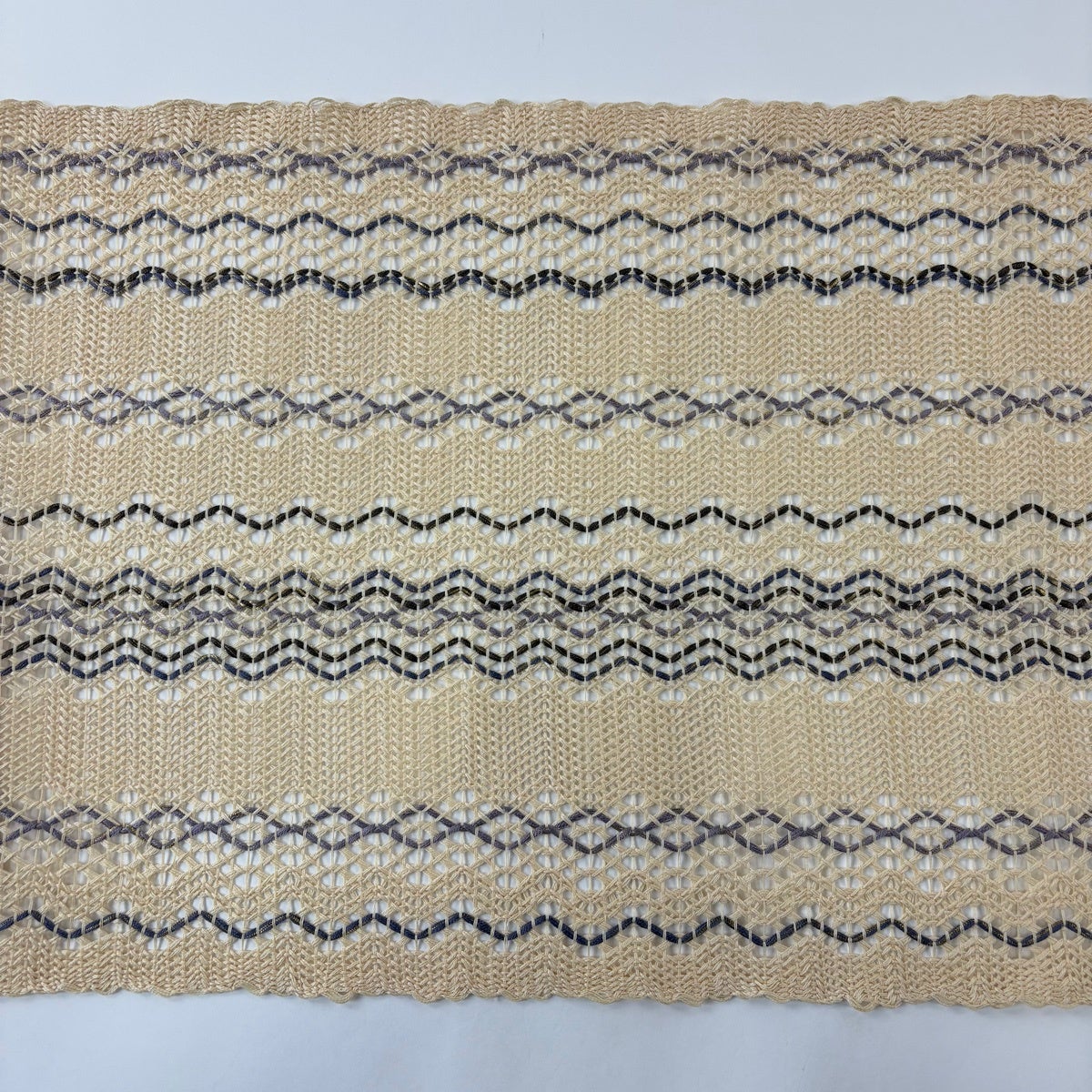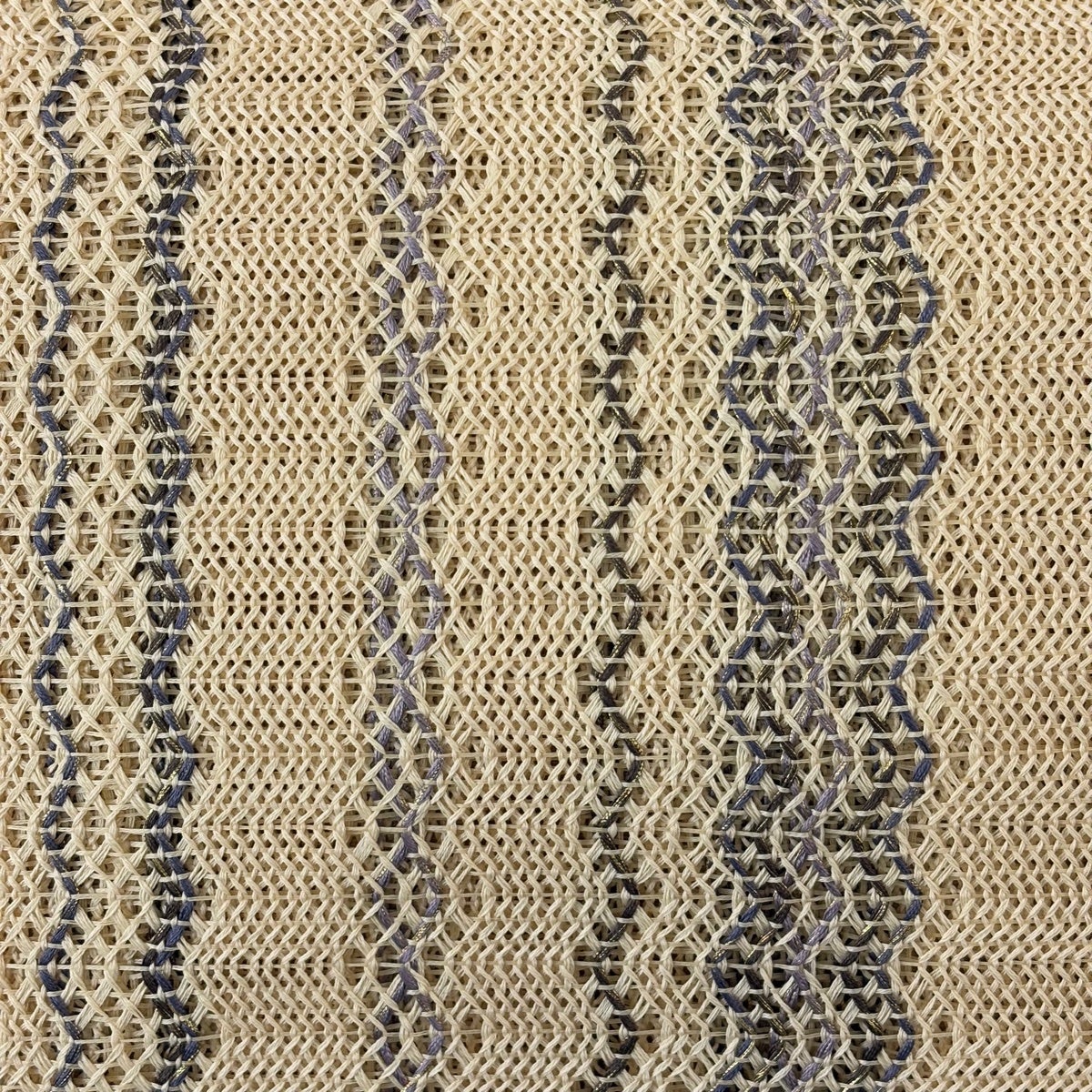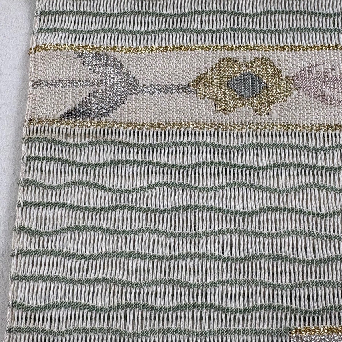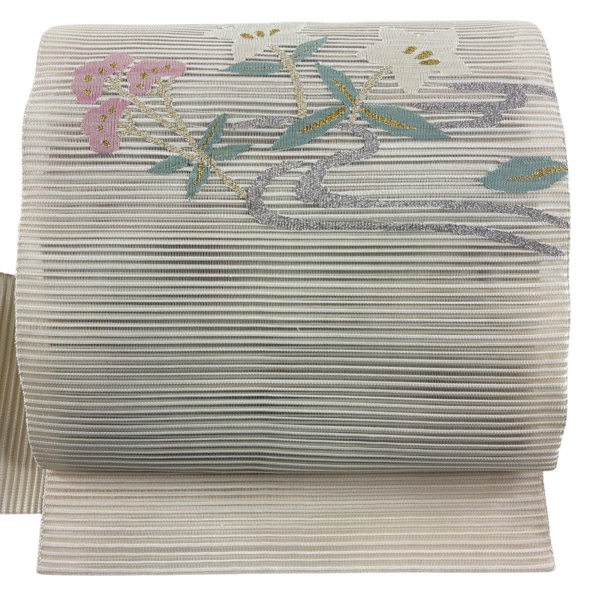 名古屋帯 秀品 段縞 幾何学模様 銀糸 クリーム 正絹