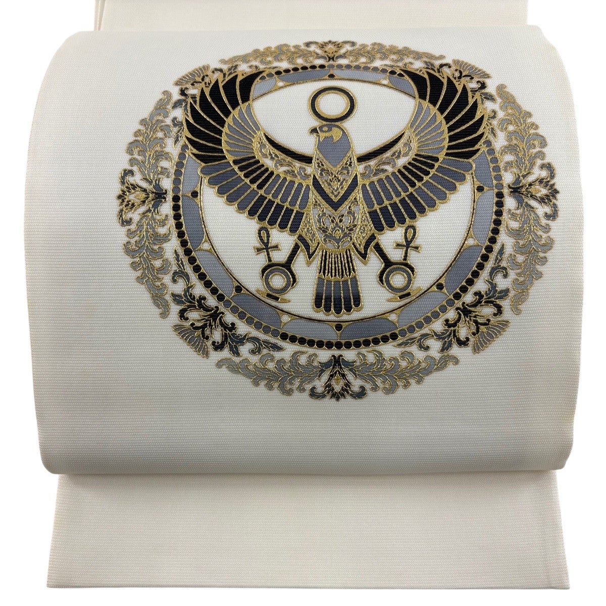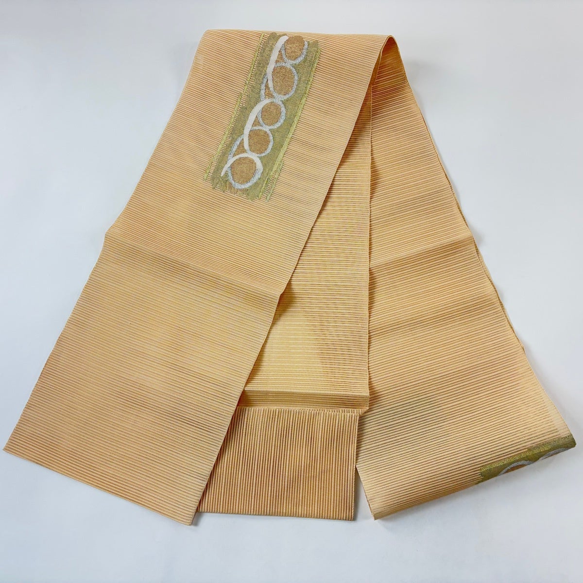 袋帯 秀品 夏帯 絽 華文 箔 金糸 クリーム お太鼓柄 正絹