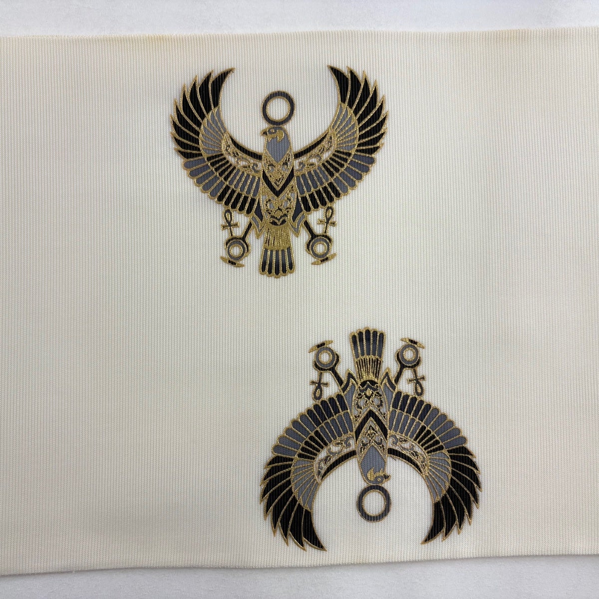 袋帯 秀品 落款あり 夏帯 絽 鳥 花唐草 金彩 クリーム お太鼓柄 正絹