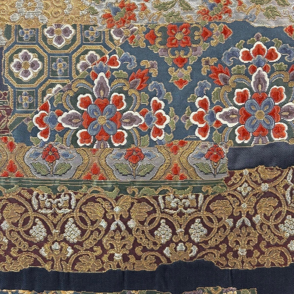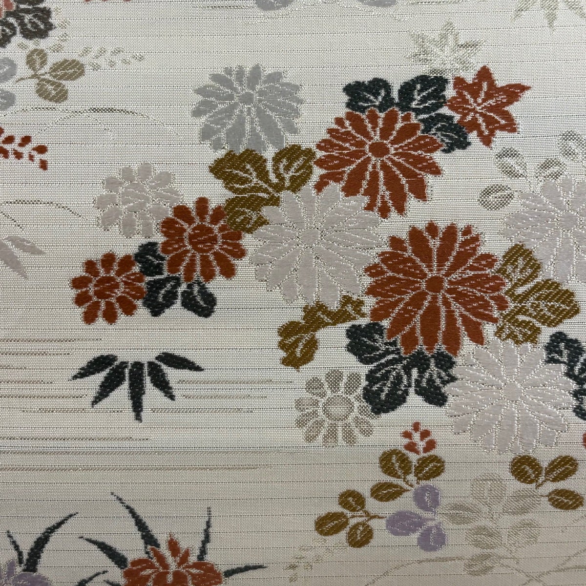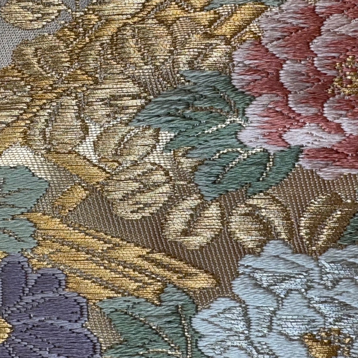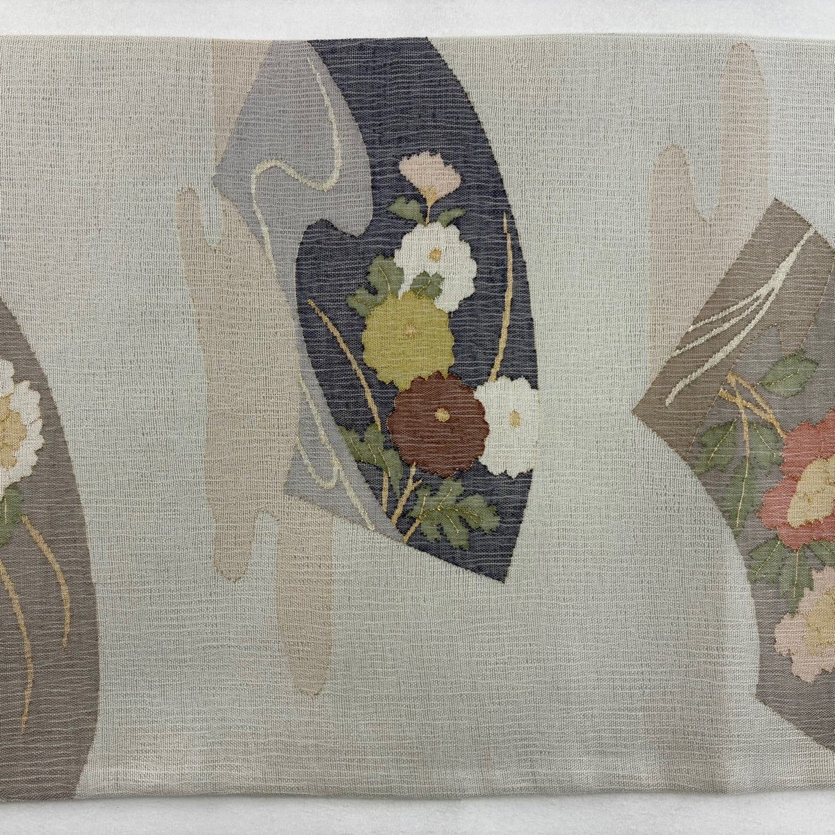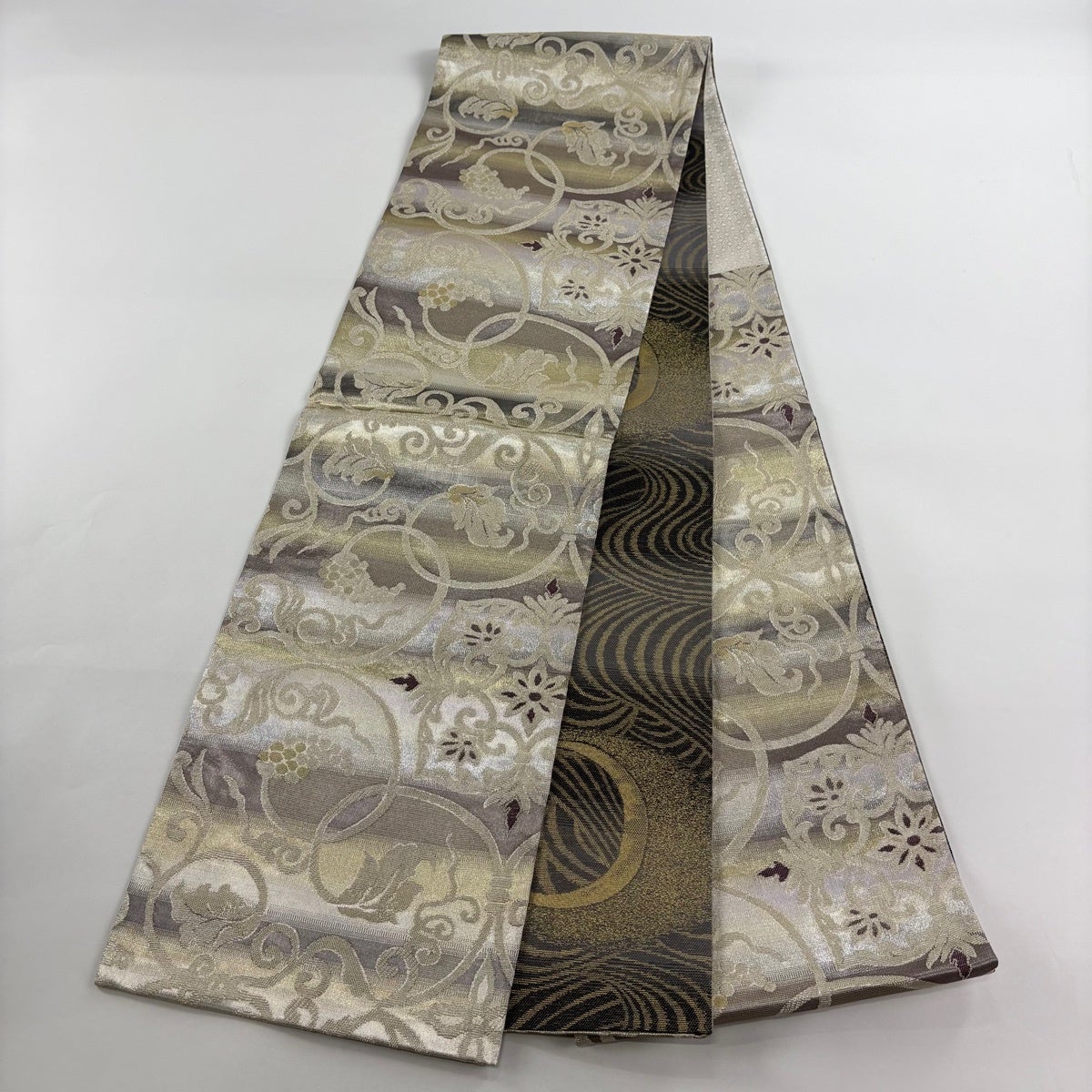 袋帯 秀品 夏帯 紗 菊 立涌 唐織 箔 灰色 六通 正絹