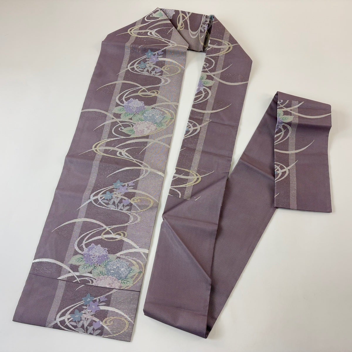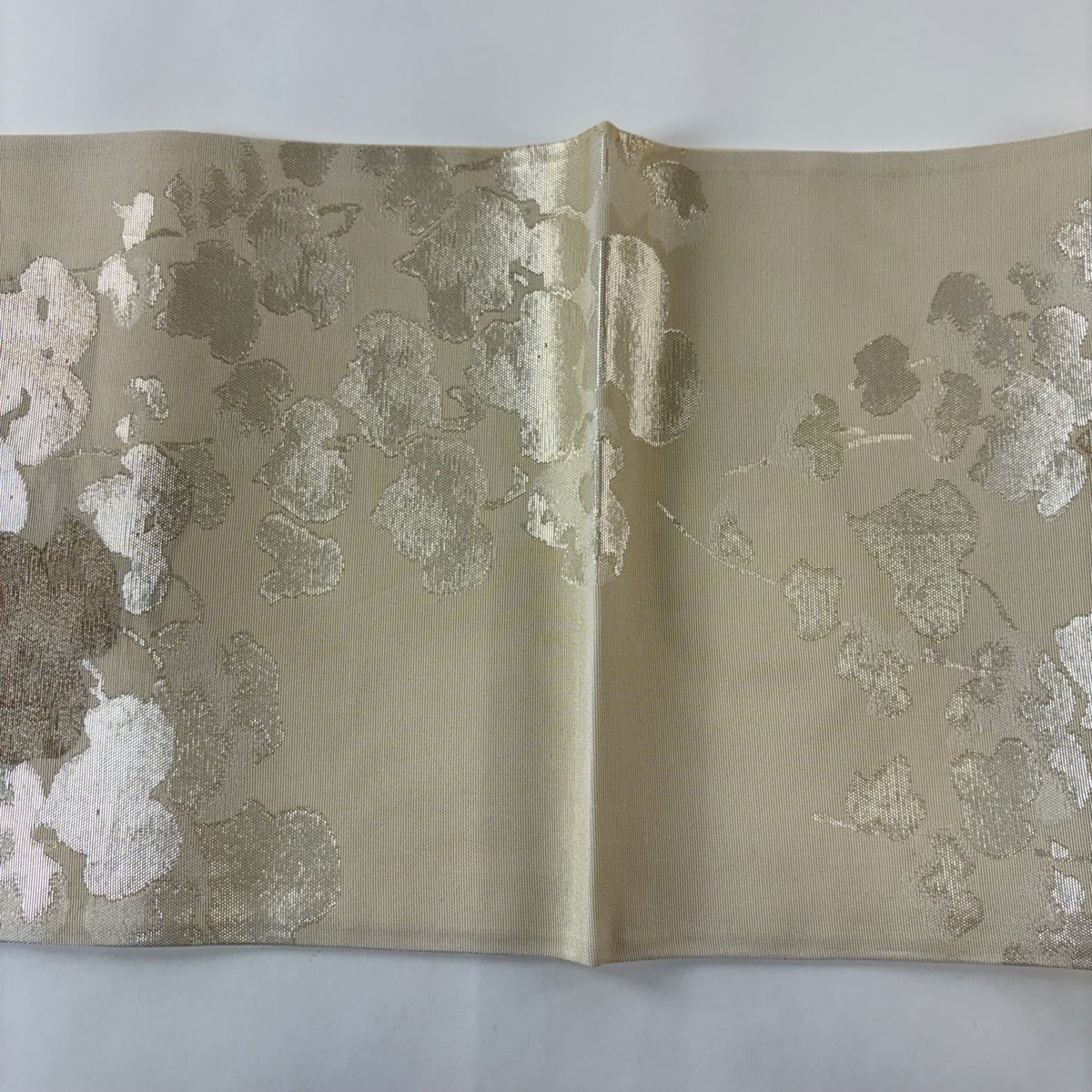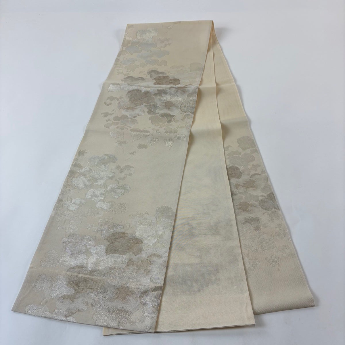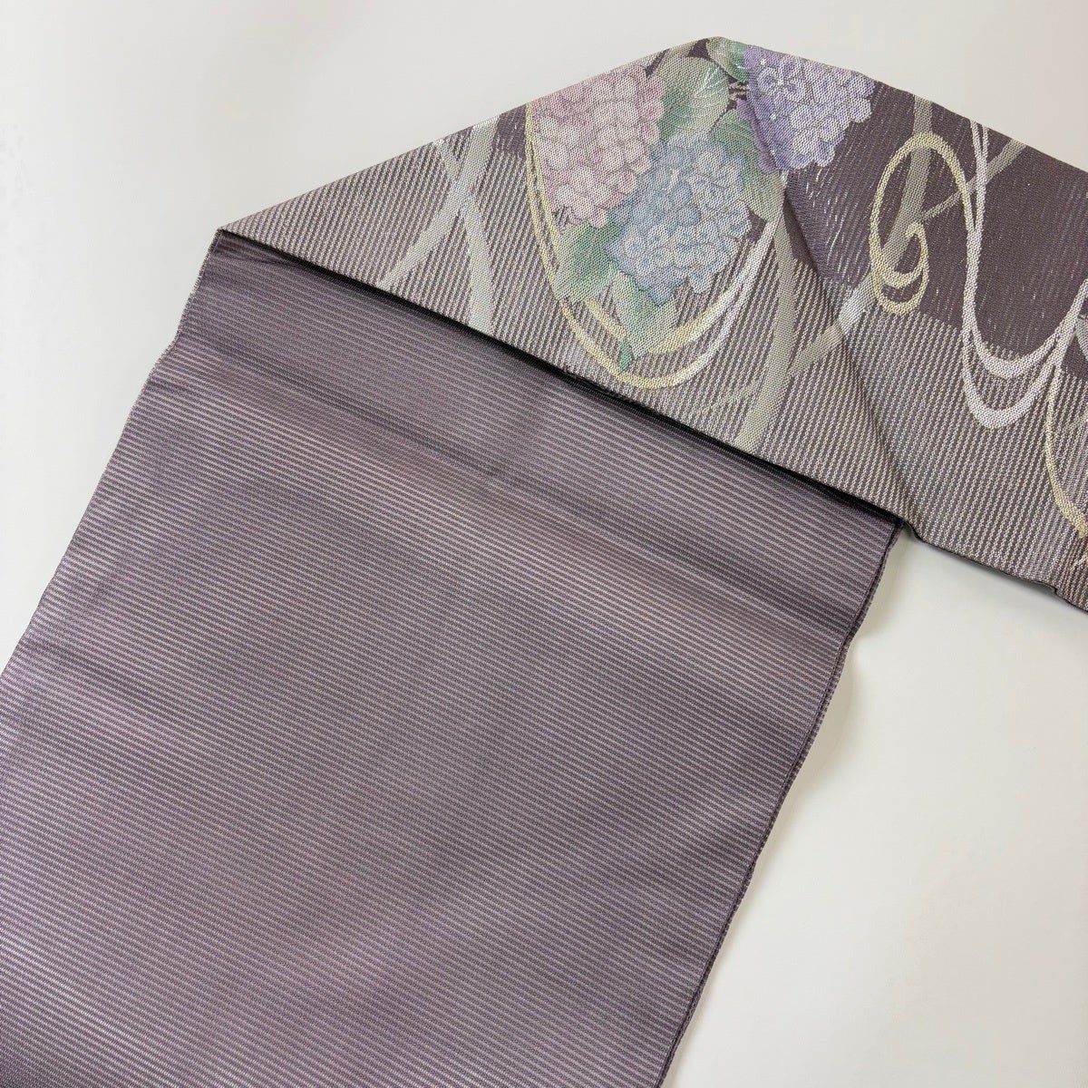 名古屋帯 秀品 夏帯 絽 紫陽花 銀糸 箔 クリーム 正絹
