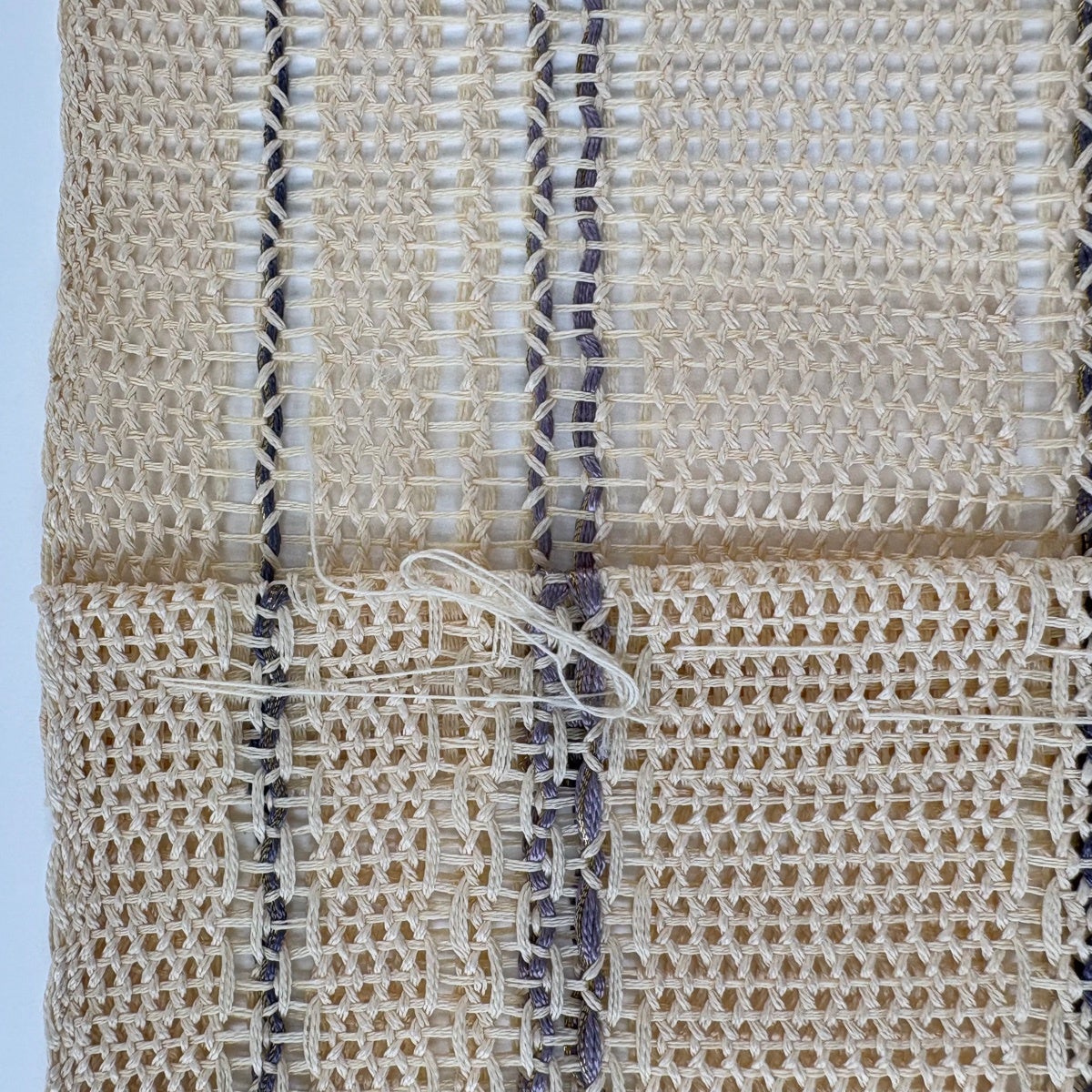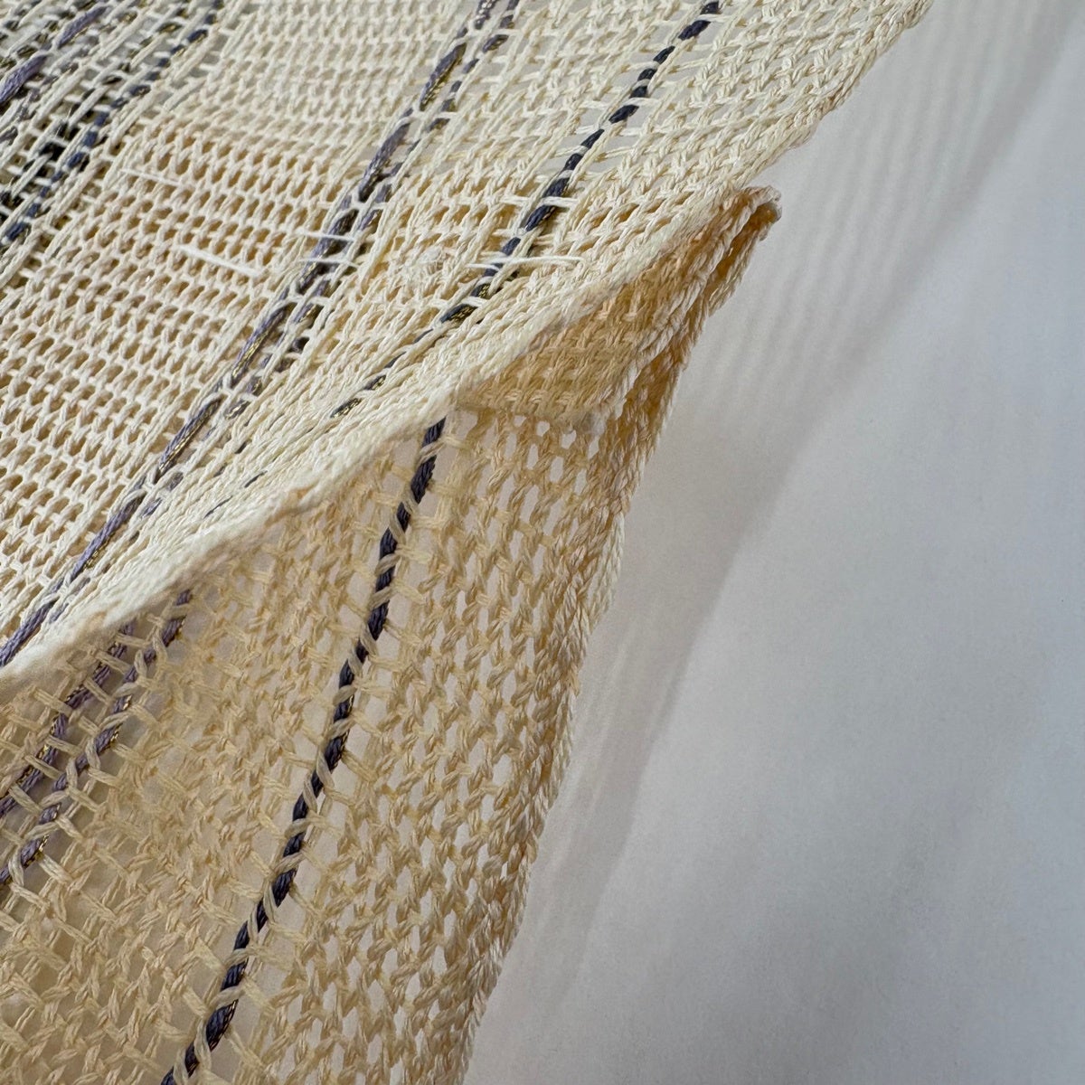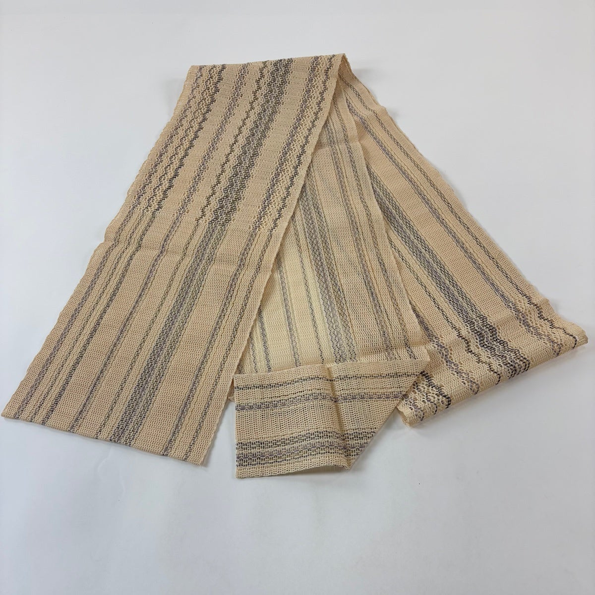 名古屋帯 秀品 夏帯 八寸名古屋帯 松葉仕立て トンネル仕立て 縞 ベージュ 正絹