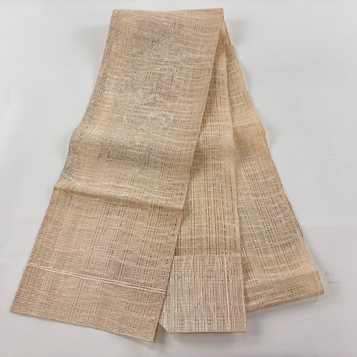 名古屋帯 秀品 夏帯 羅 八寸名古屋帯 扇面 薄茶色 正絹