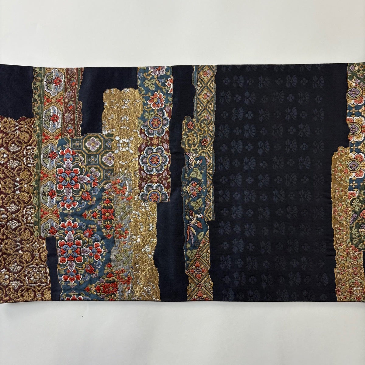 袋帯 秀品 夏帯 絽 鳥 花 切嵌 黒 お太鼓柄 正絹