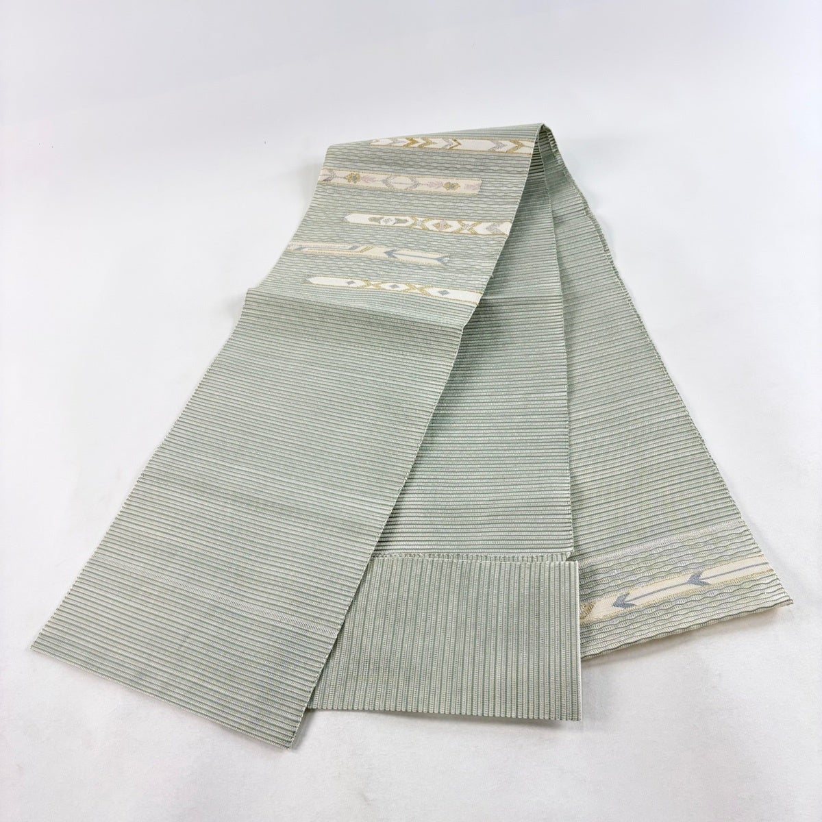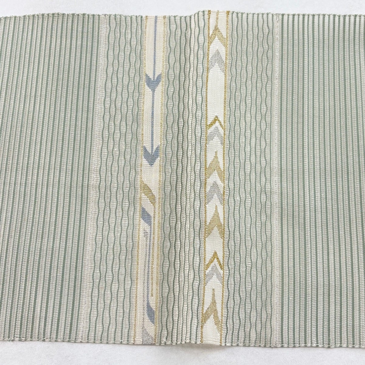 袋帯 秀品 夏帯 鹿 金銀糸 灰緑 お太鼓柄 正絹