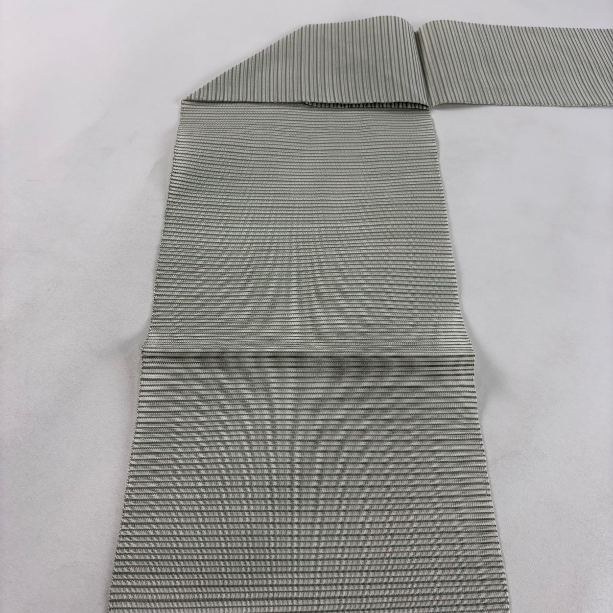 名古屋帯 秀品 夏帯 羅 八寸名古屋帯 横段 亀甲 灰白 正絹