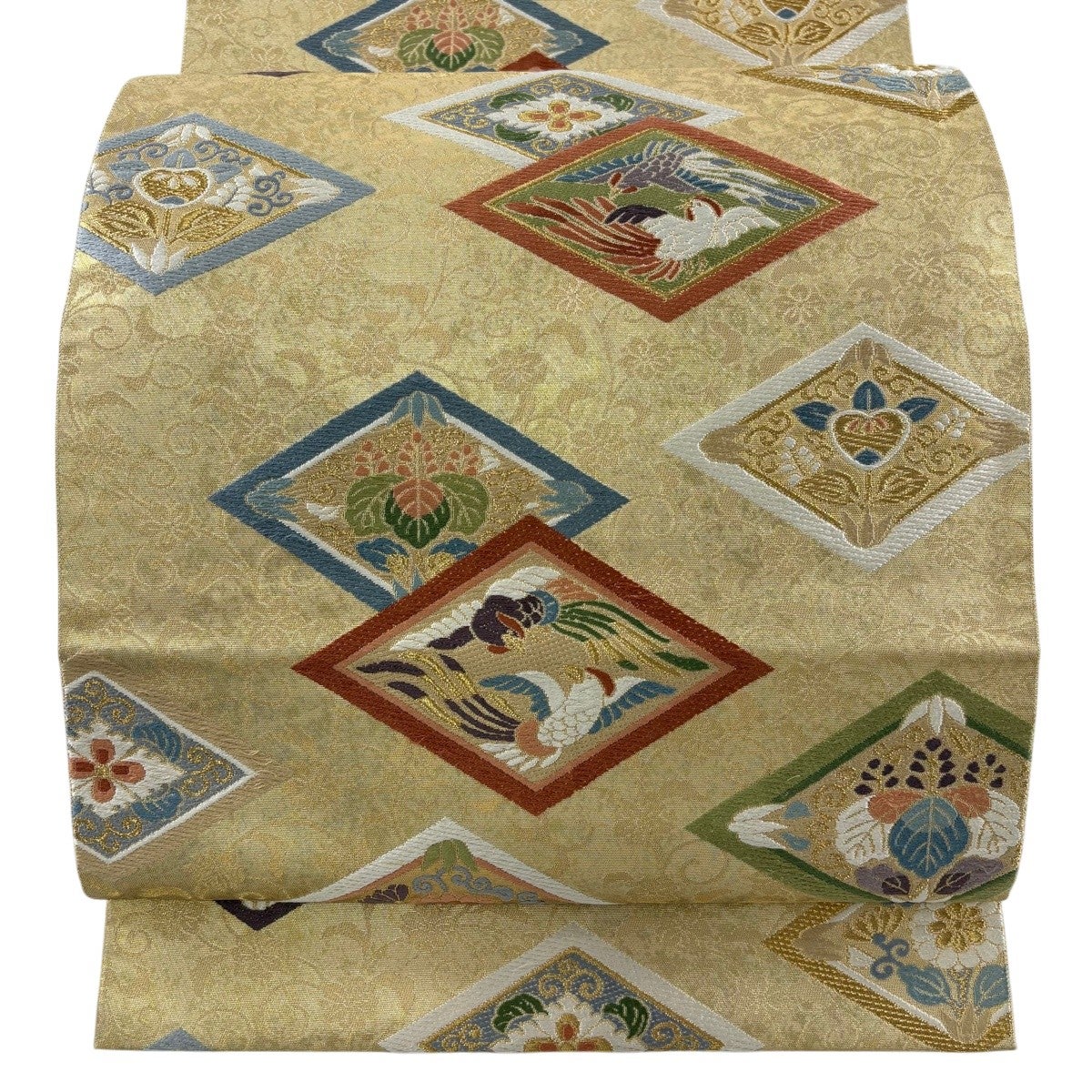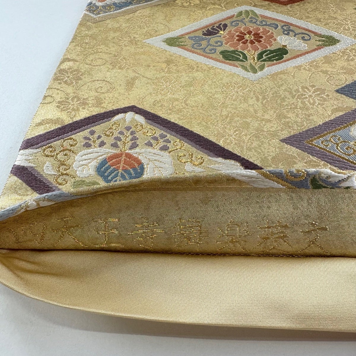 【美品】 袋帯 秀品 華文 花菱 金糸 箔 金茶 六通 正絹