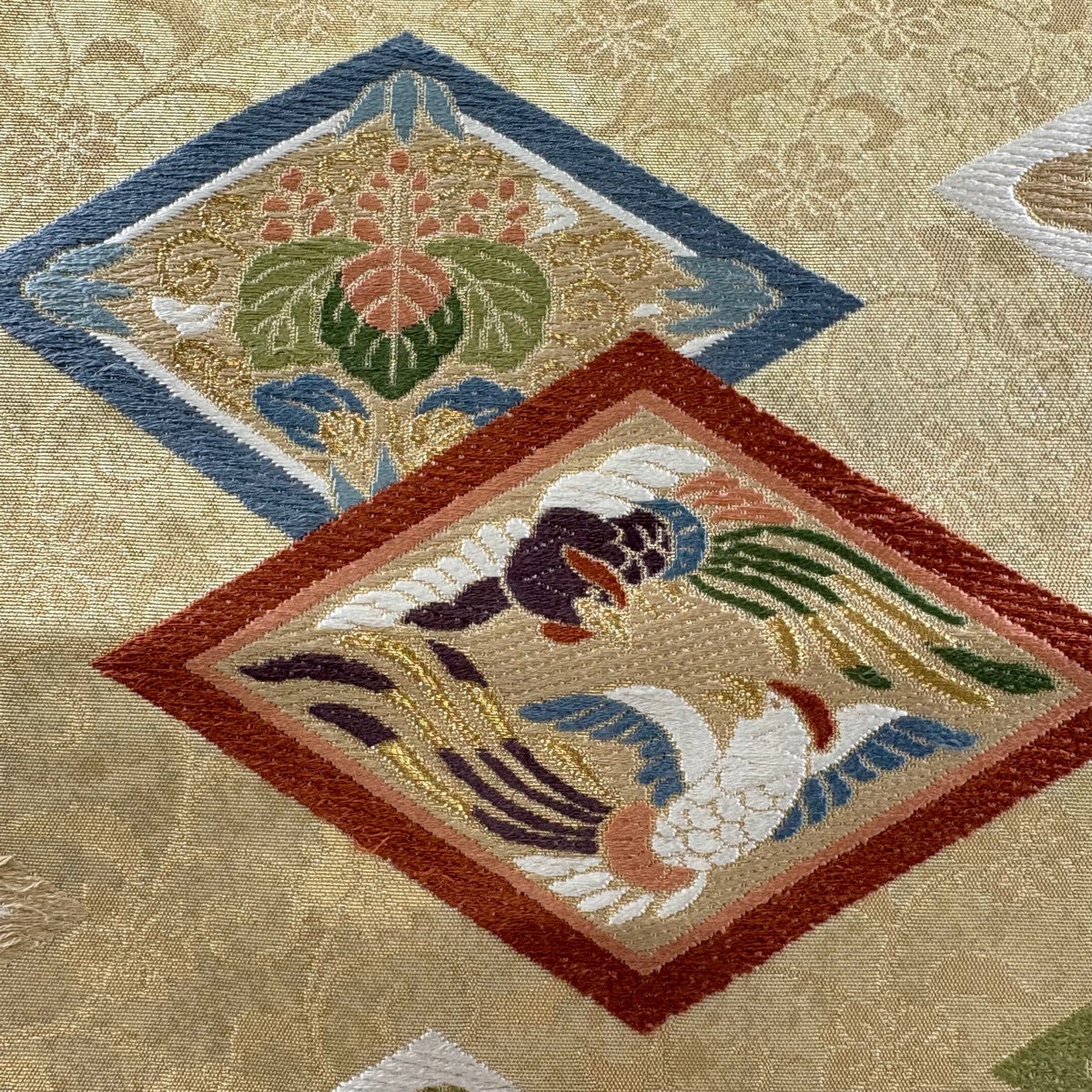 袋名古屋帯 秀品 菱 金糸 灰色 正絹