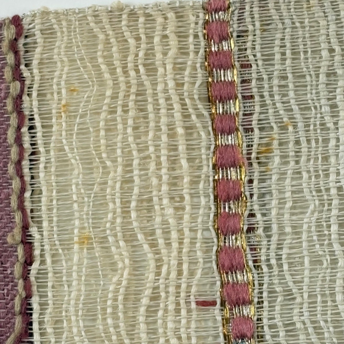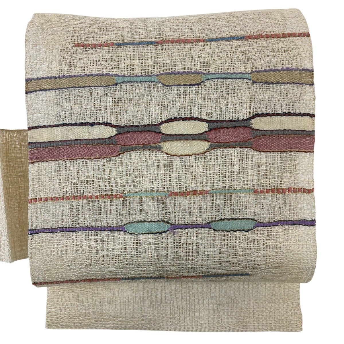 【美品】 袋帯 秀品 夏帯 絽 幾何学模様 金糸 箔 クリーム 六通 正絹