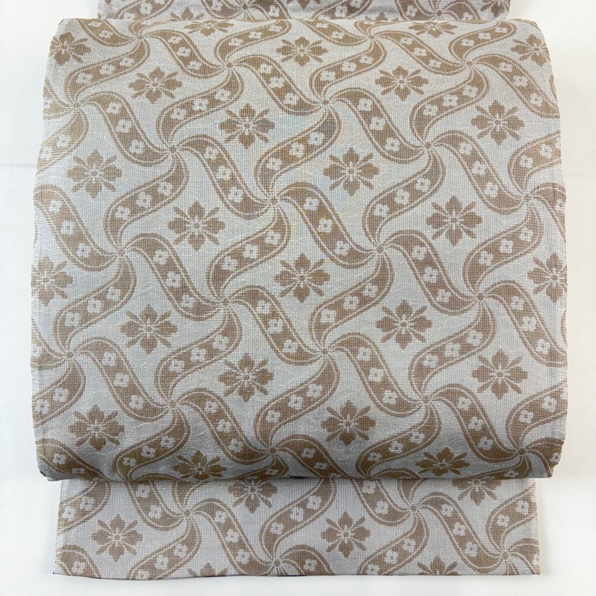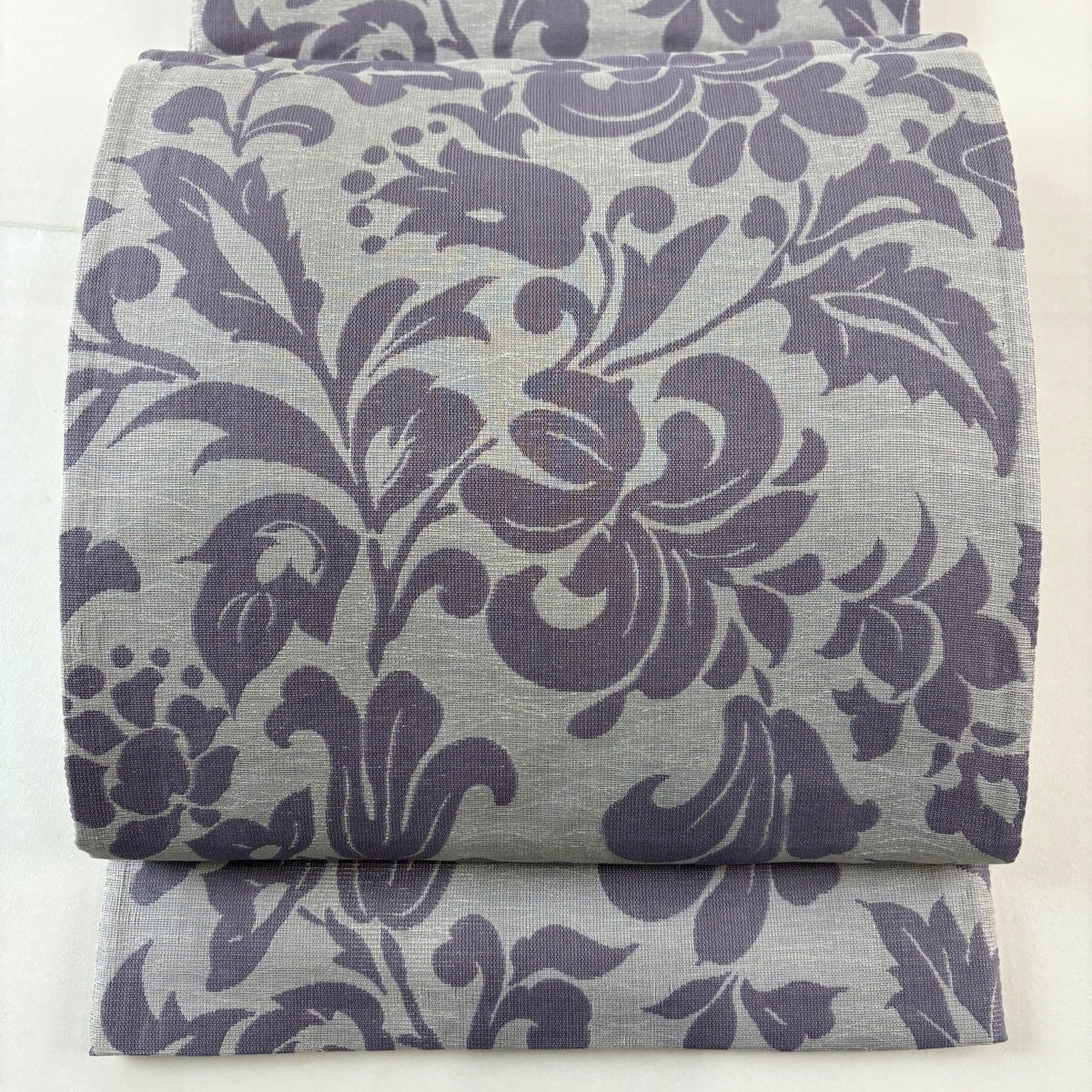 袋帯 秀品 流水波彩文 金糸 箔 銀色 六通 正絹