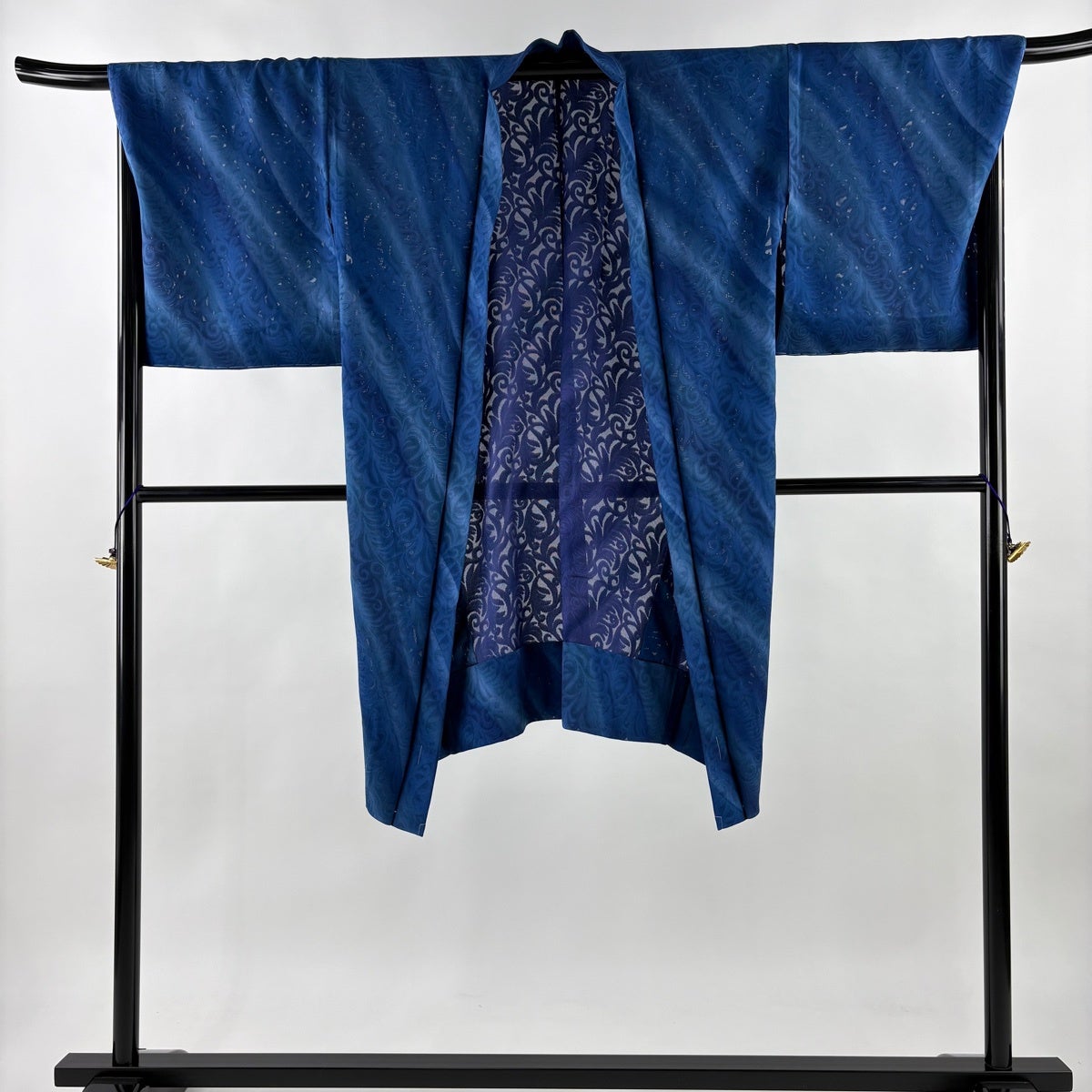 大島紬 身丈155cm 裄丈65cm M 袷 純泥染 証紙あり 花 紺色 正絹 秀品