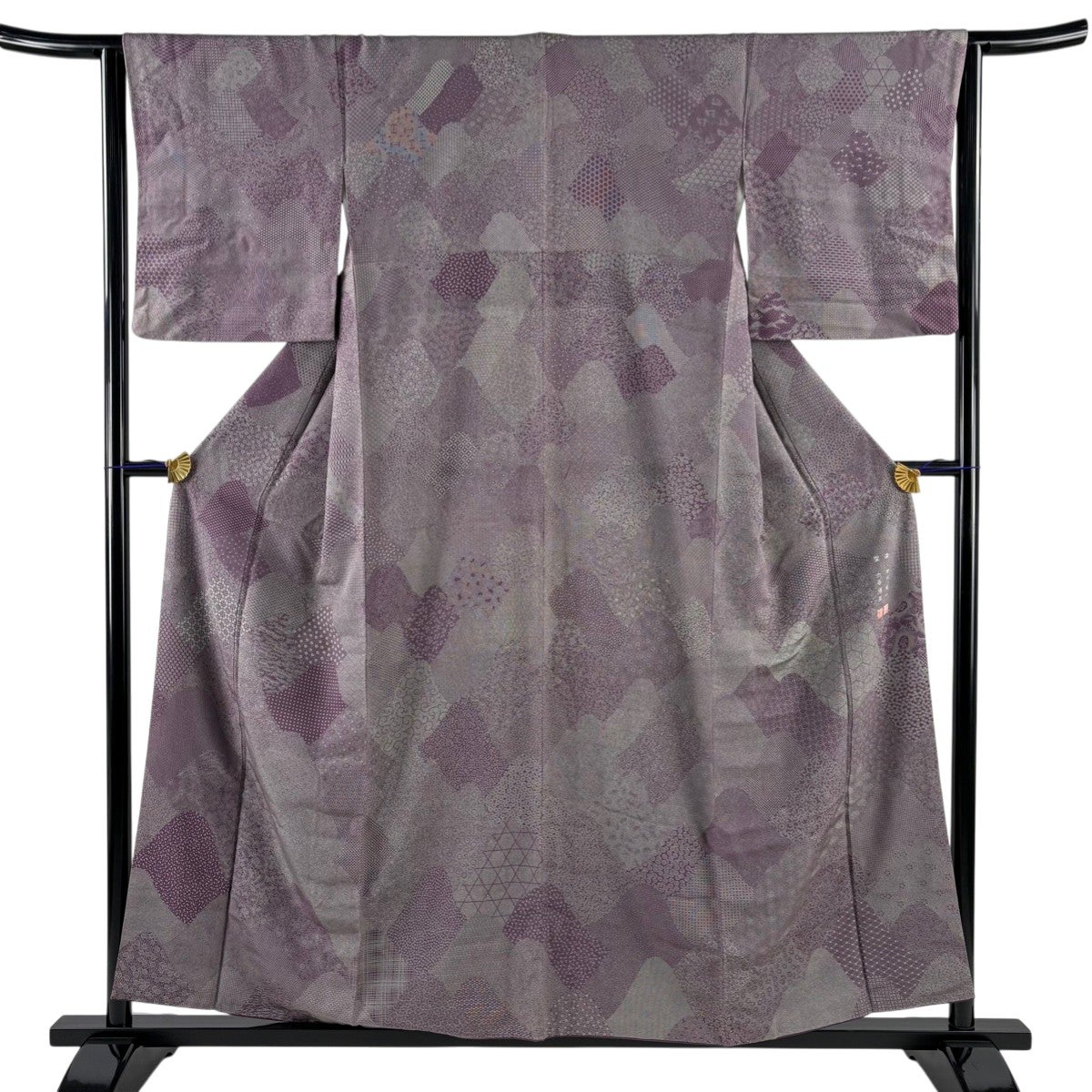 【美品】 小紋 身丈161.5cm 裄丈66cm M 袷 紬地 ますいわ屋 幾何学 焦茶色 正絹 秀品