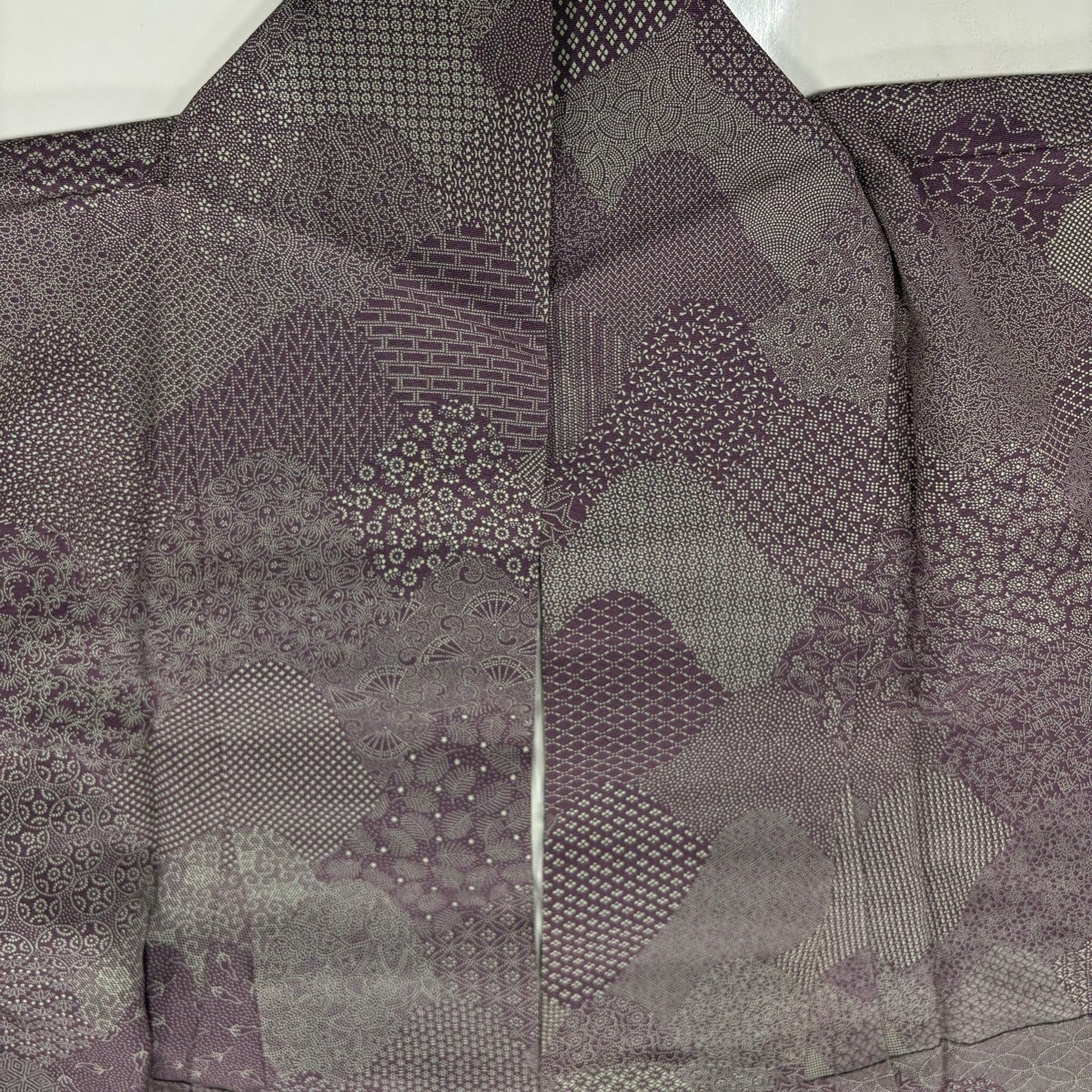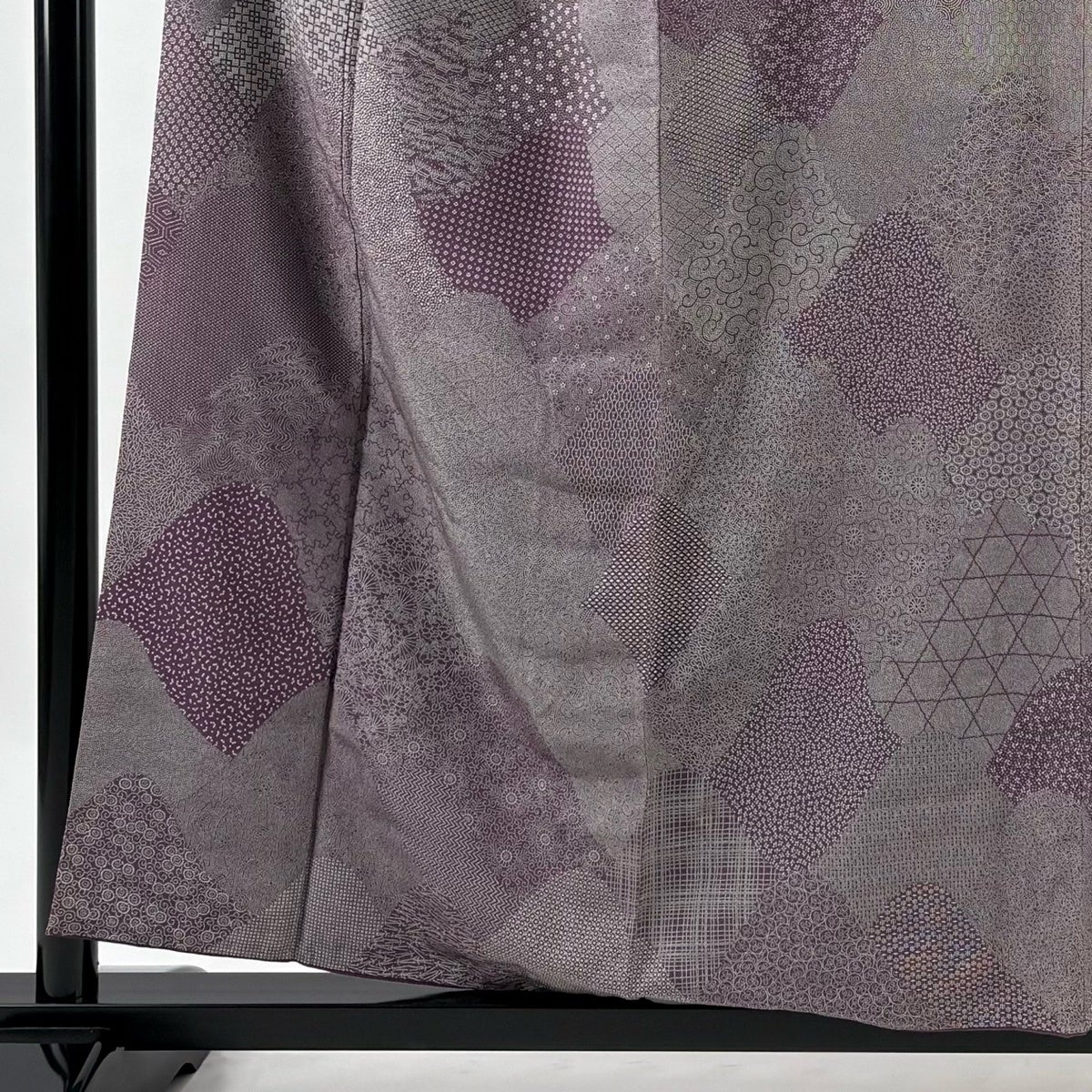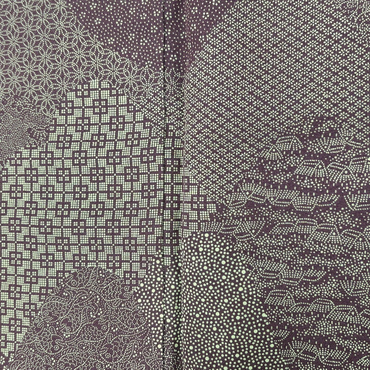 【美品】 袋帯 名品 幾何学模様 銀糸 箔 紫 全通 正絹