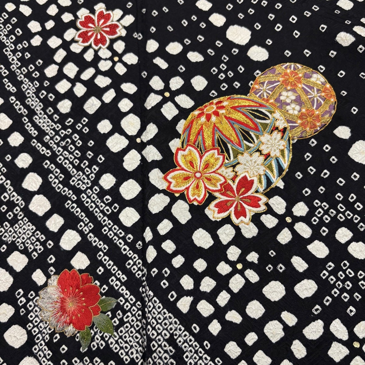 振袖 身丈158cm 裄丈63.5cm S 袷 菊 地紋 金糸 金彩 オレンジ 正絹 秀品