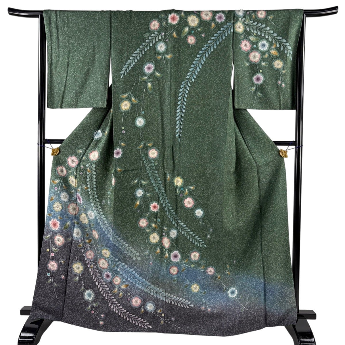 訪問着 身丈163cm 裄丈64cm M 袷 椿 梅 刺繍 金彩 青緑 正絹 秀品
