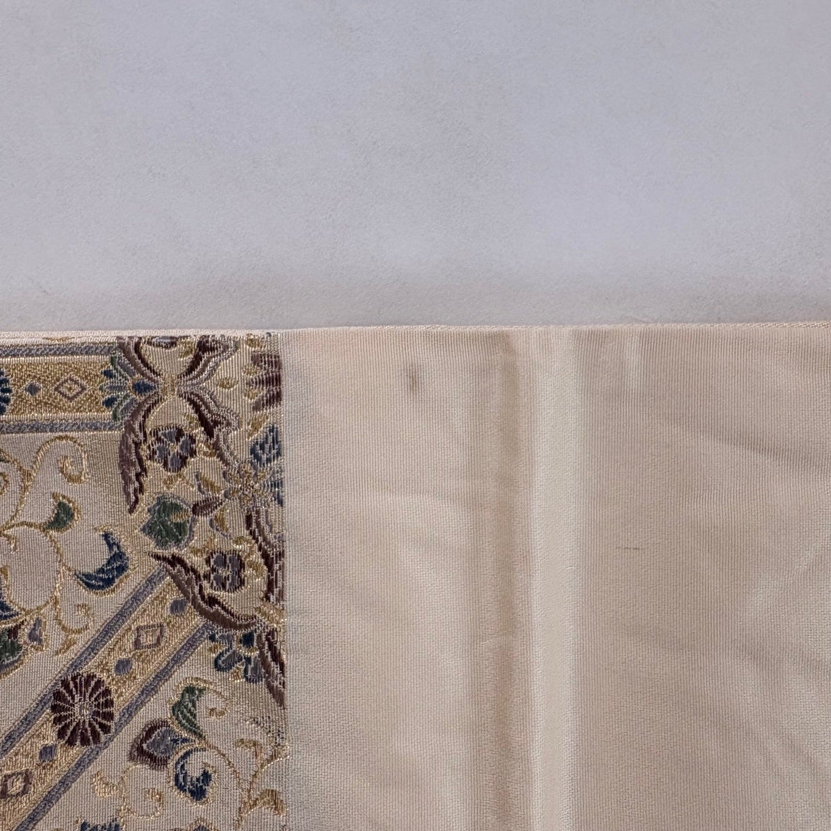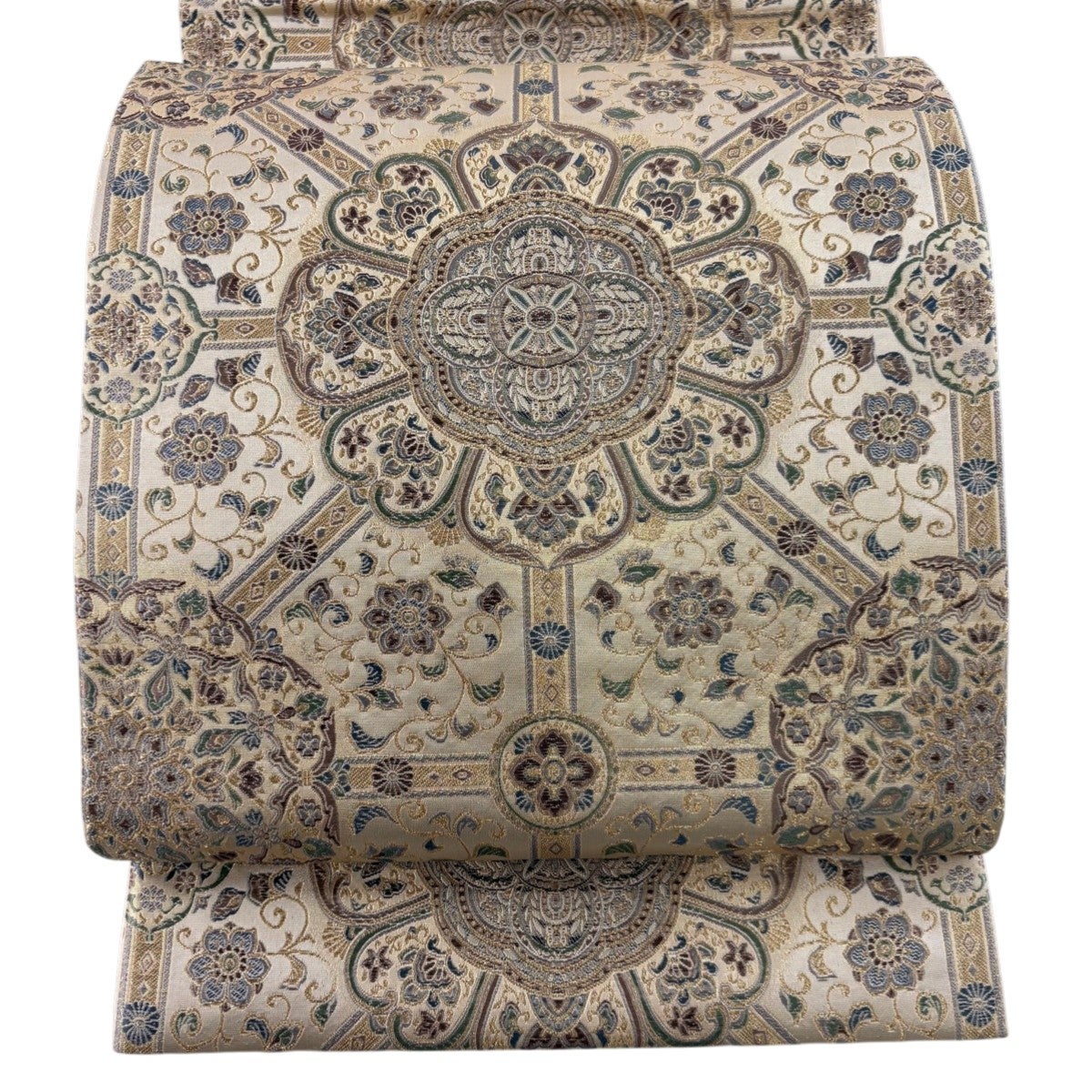 【美品】 名古屋帯 優品 関西仕立て 華文 花唐草 ベージュ 正絹