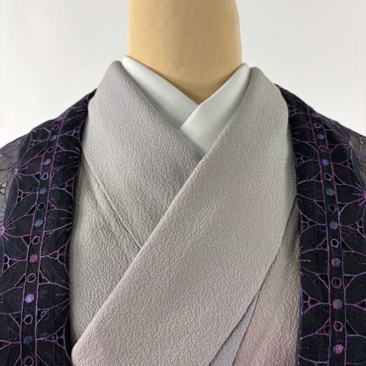 付下げ 身丈165cm 裄丈66.5cm M 袷 落款あり 霞 幾何学 金彩 ぼかし 薄紫 正絹 名品 一つ紋