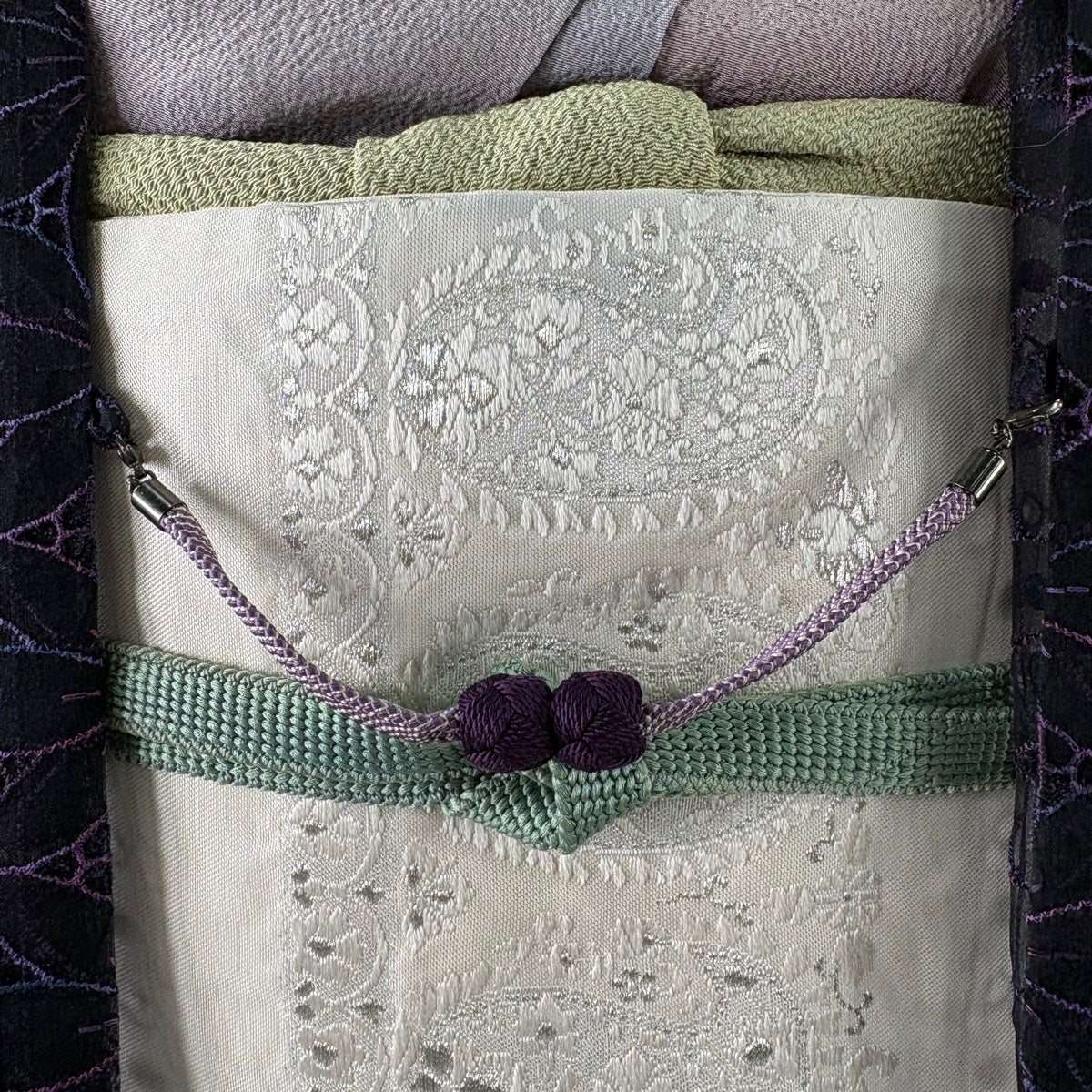 【美品】 名古屋帯 秀品 夏帯 八寸名古屋帯 松葉仕立て 縞 格子 黒灰 正絹