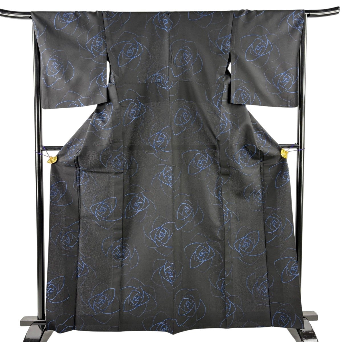 訪問着 身丈156cm 裄丈62.5cm S 袷 落款あり 辻が花 銀通し ぼかし 青灰色 正絹 名品