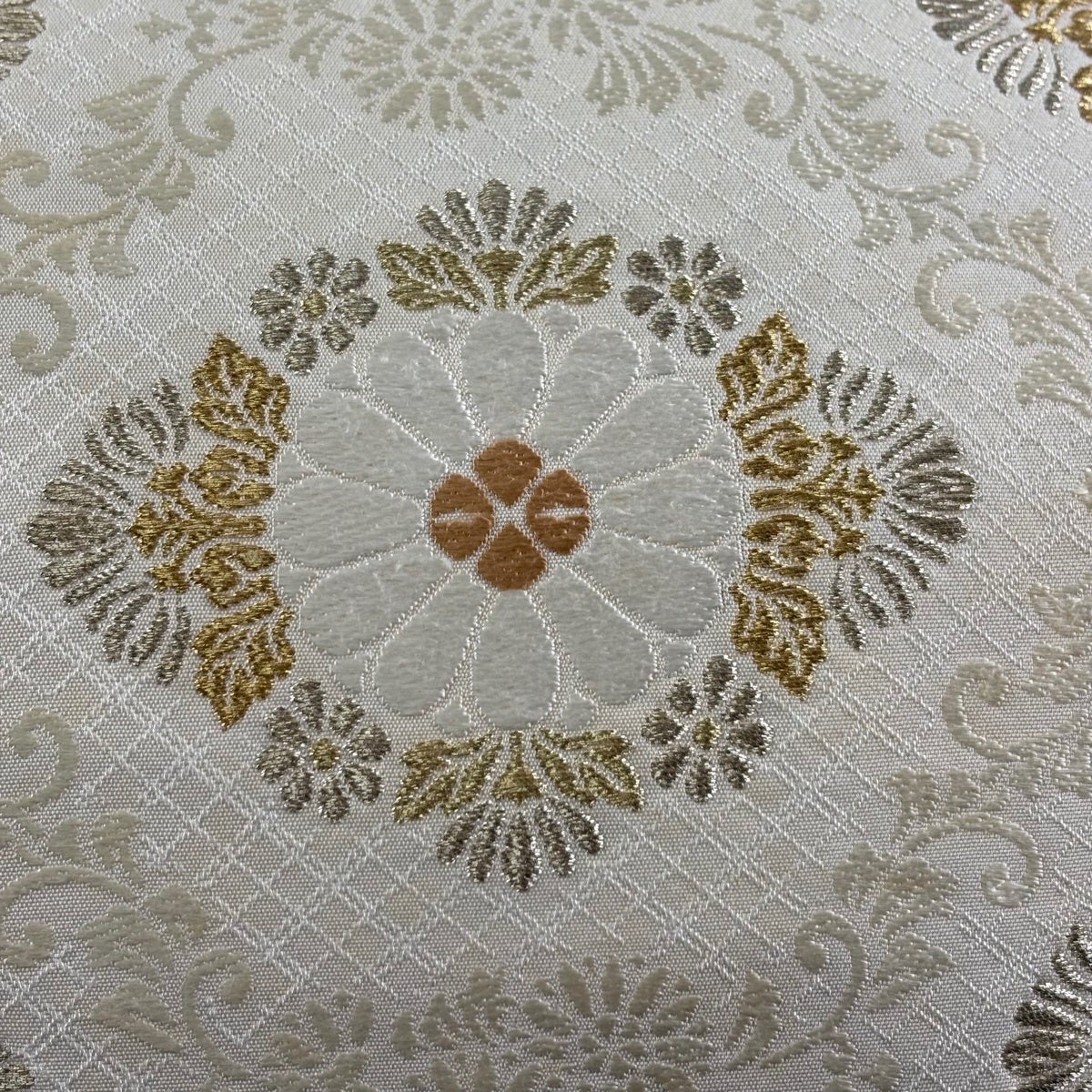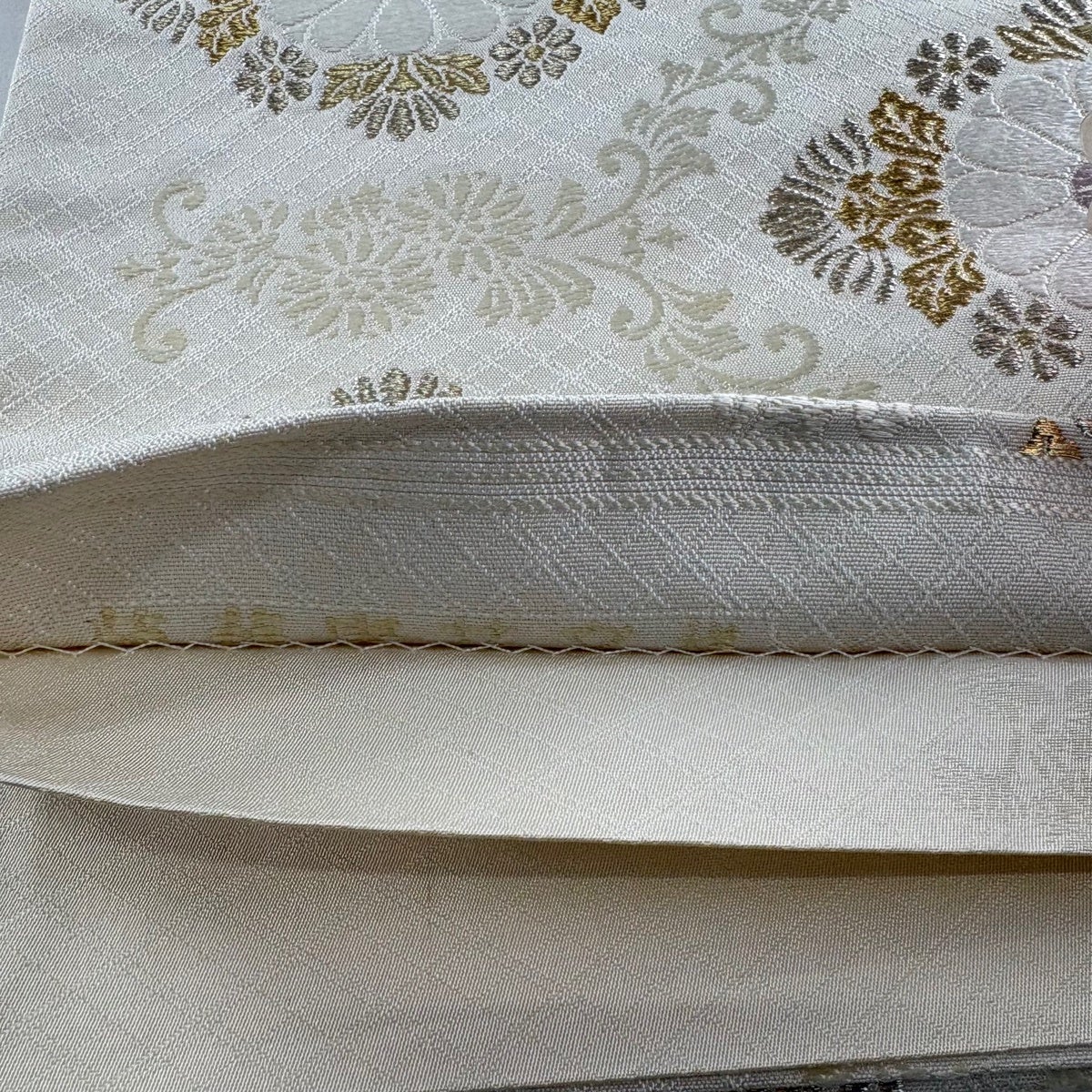 袋帯 名品 華文 花唐草 金銀糸 刺繍 クリーム 六通 正絹