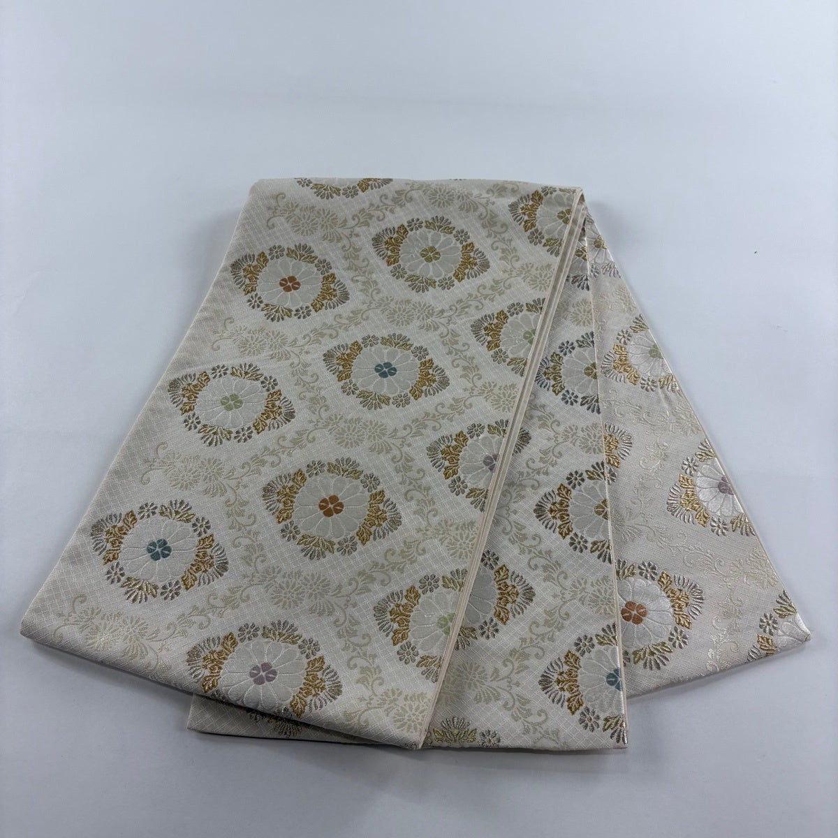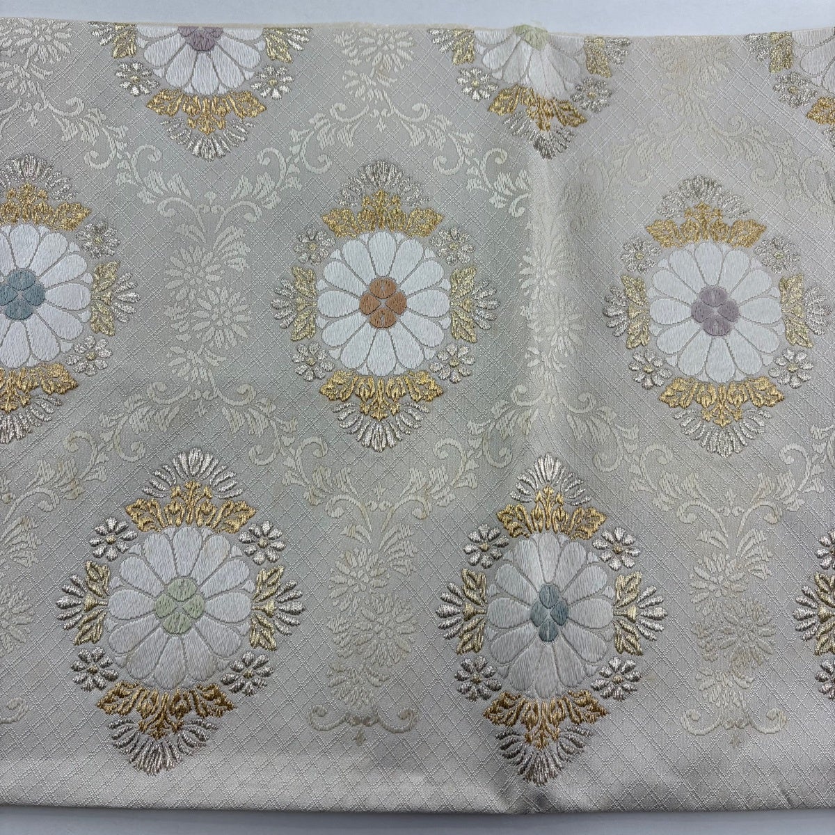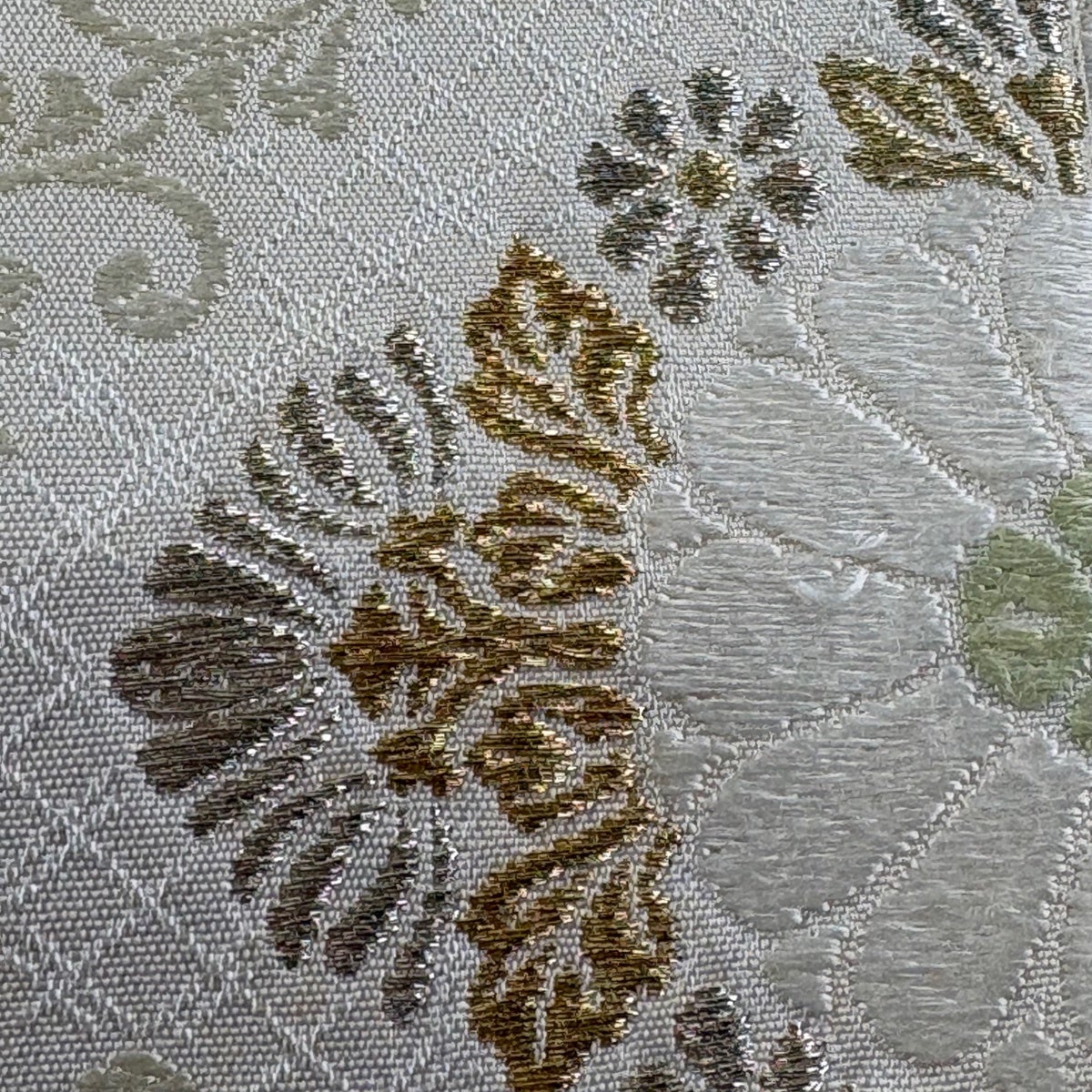 【美品】 袋帯 秀品 夏帯 菱 草花 金銀糸 箔 ベージュ お太鼓柄 正絹