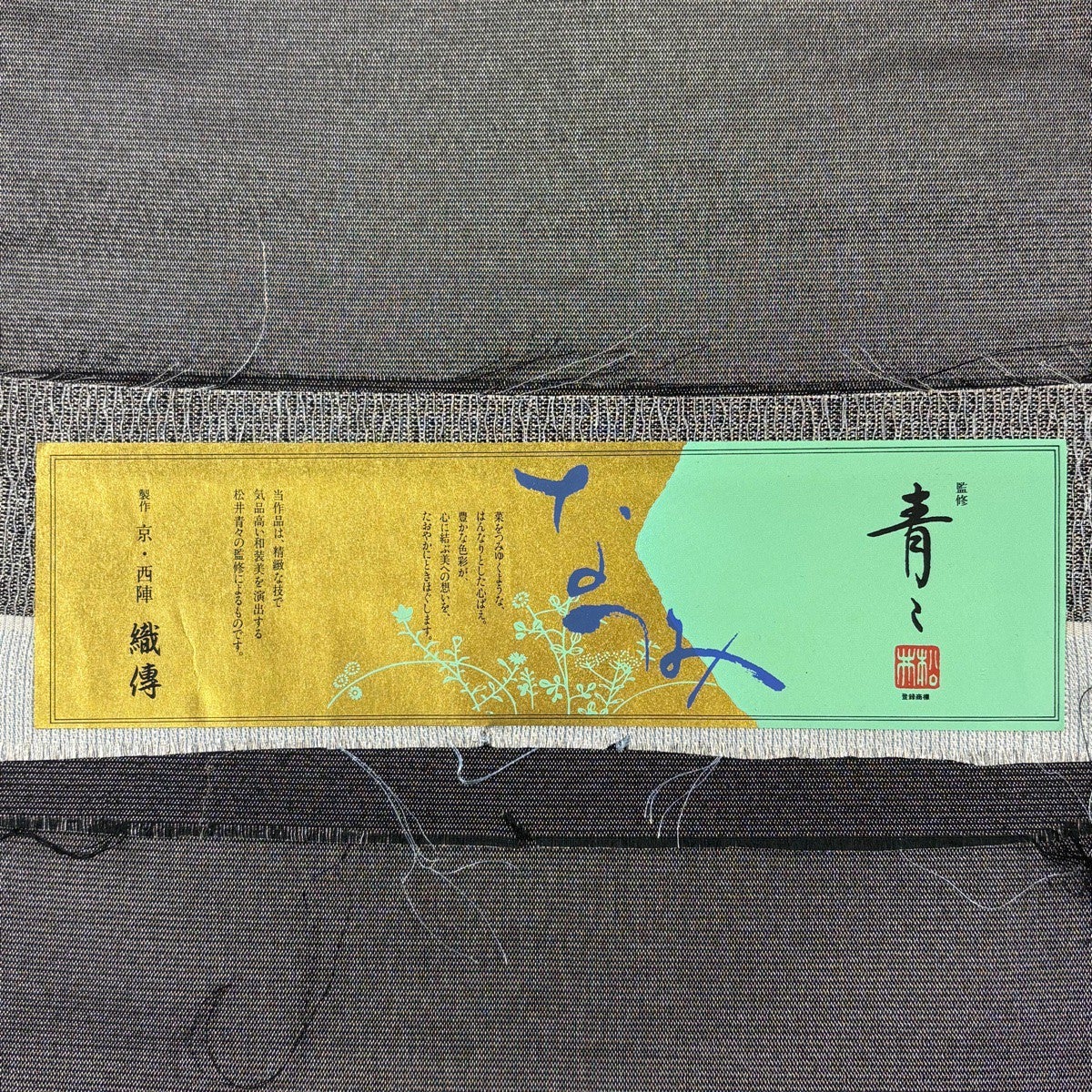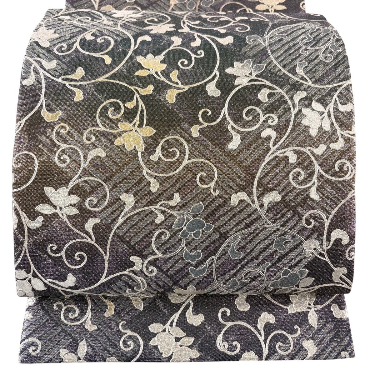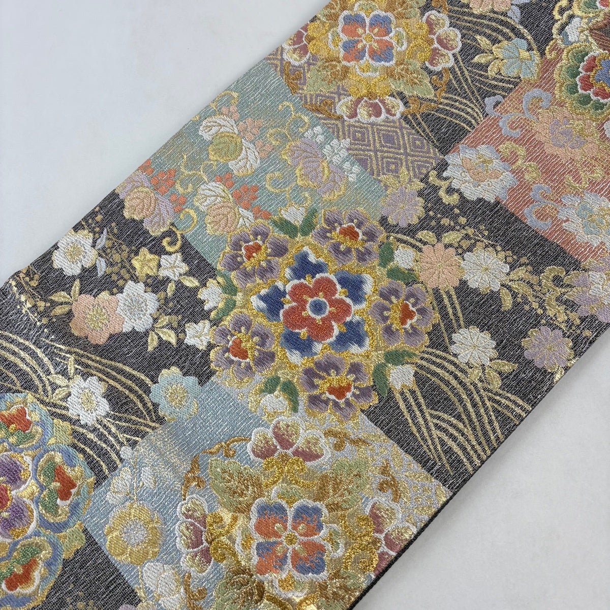 【美品】 袋帯 名品 松井青々監修 華文 草花 黒灰 六通 正絹