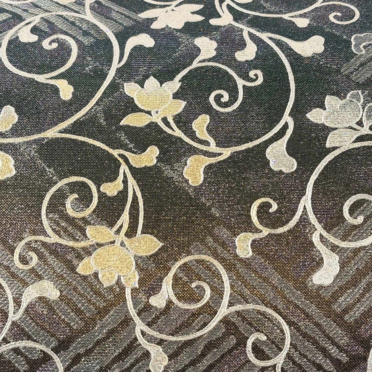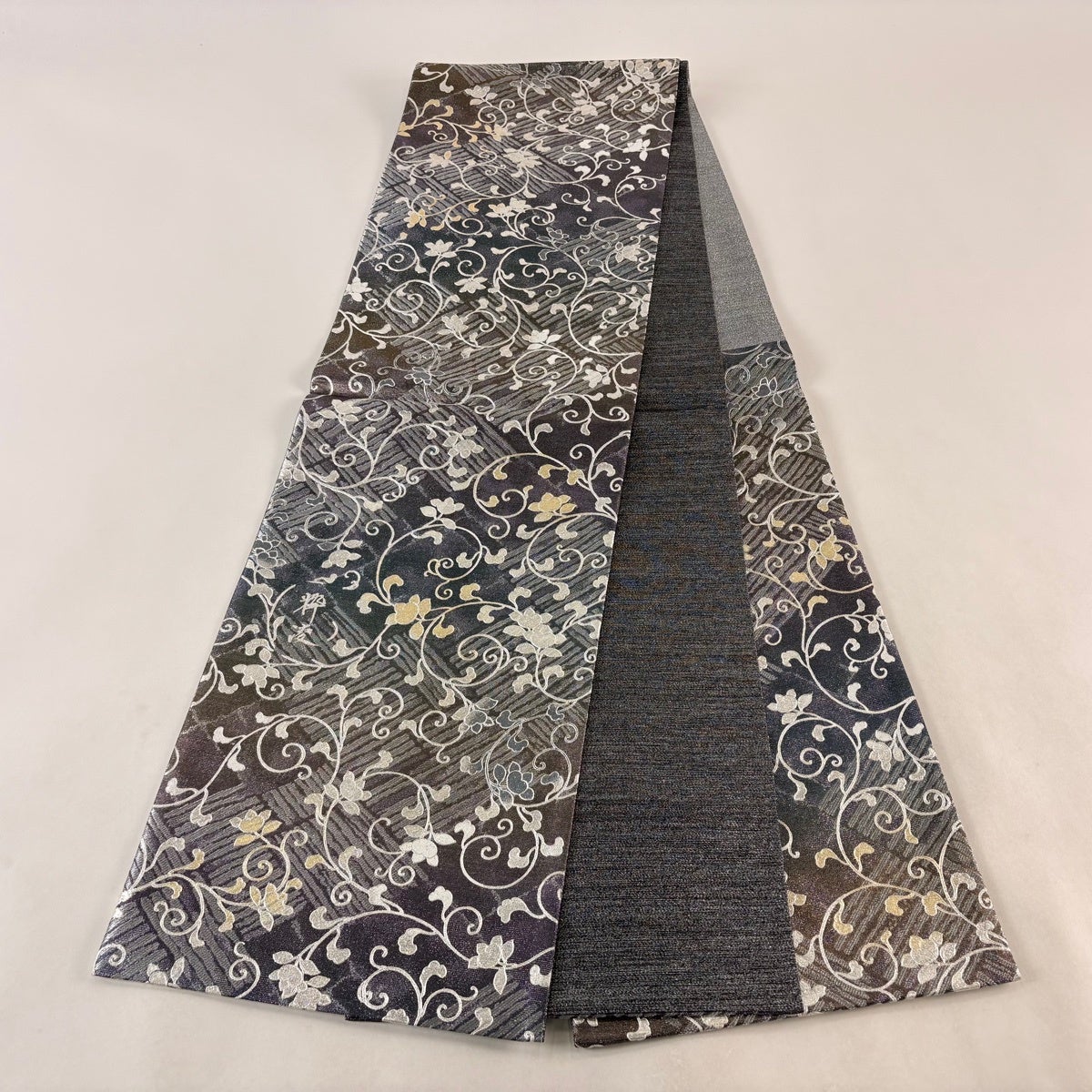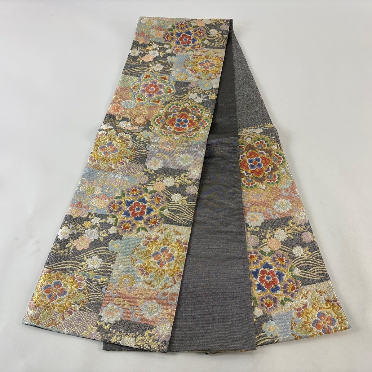 【美品】 袋帯 名品 松井青々監修 華文 草花 黒灰 六通 正絹