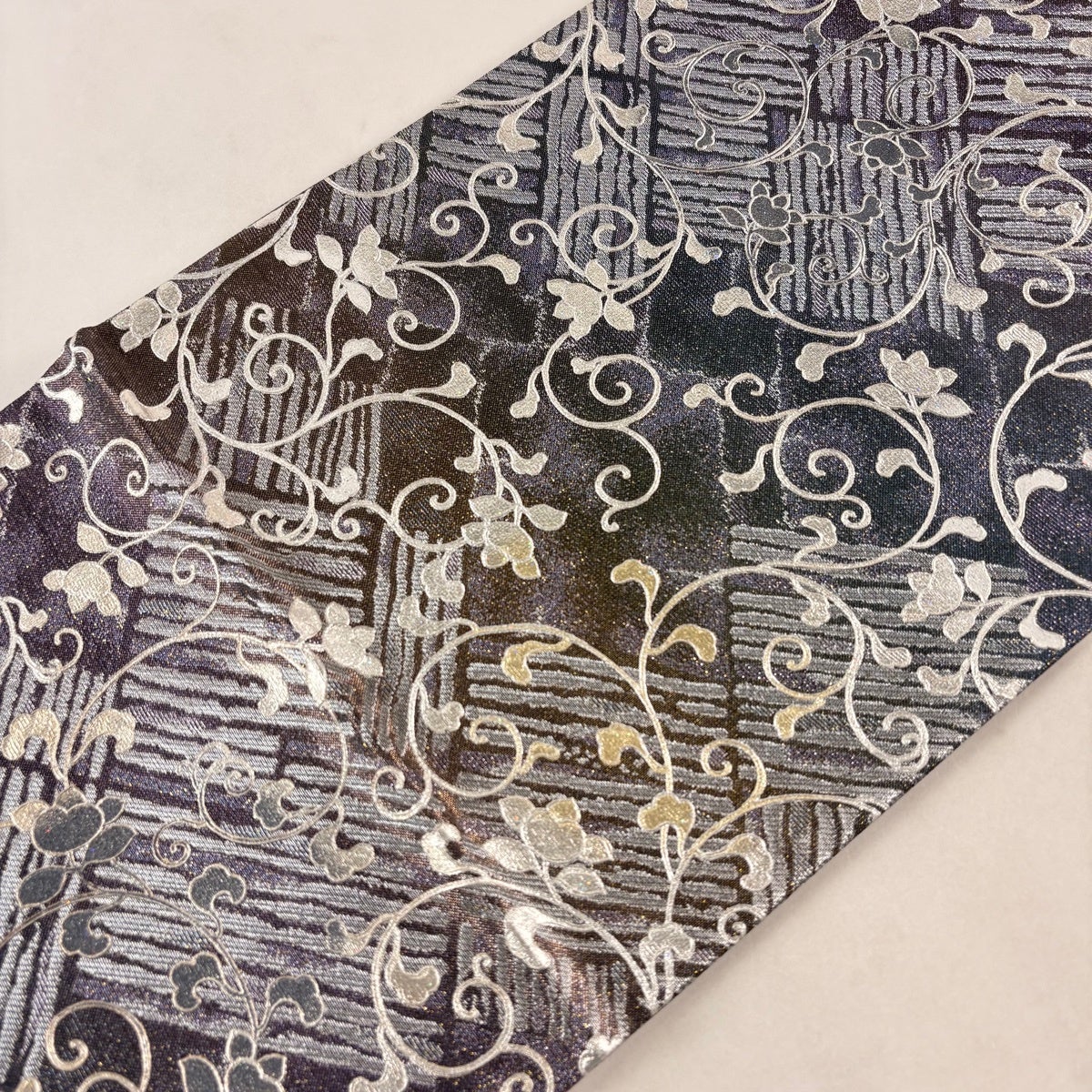【美品】 袋帯 名品 花唐草 箔 金銀彩 紫 六通 正絹