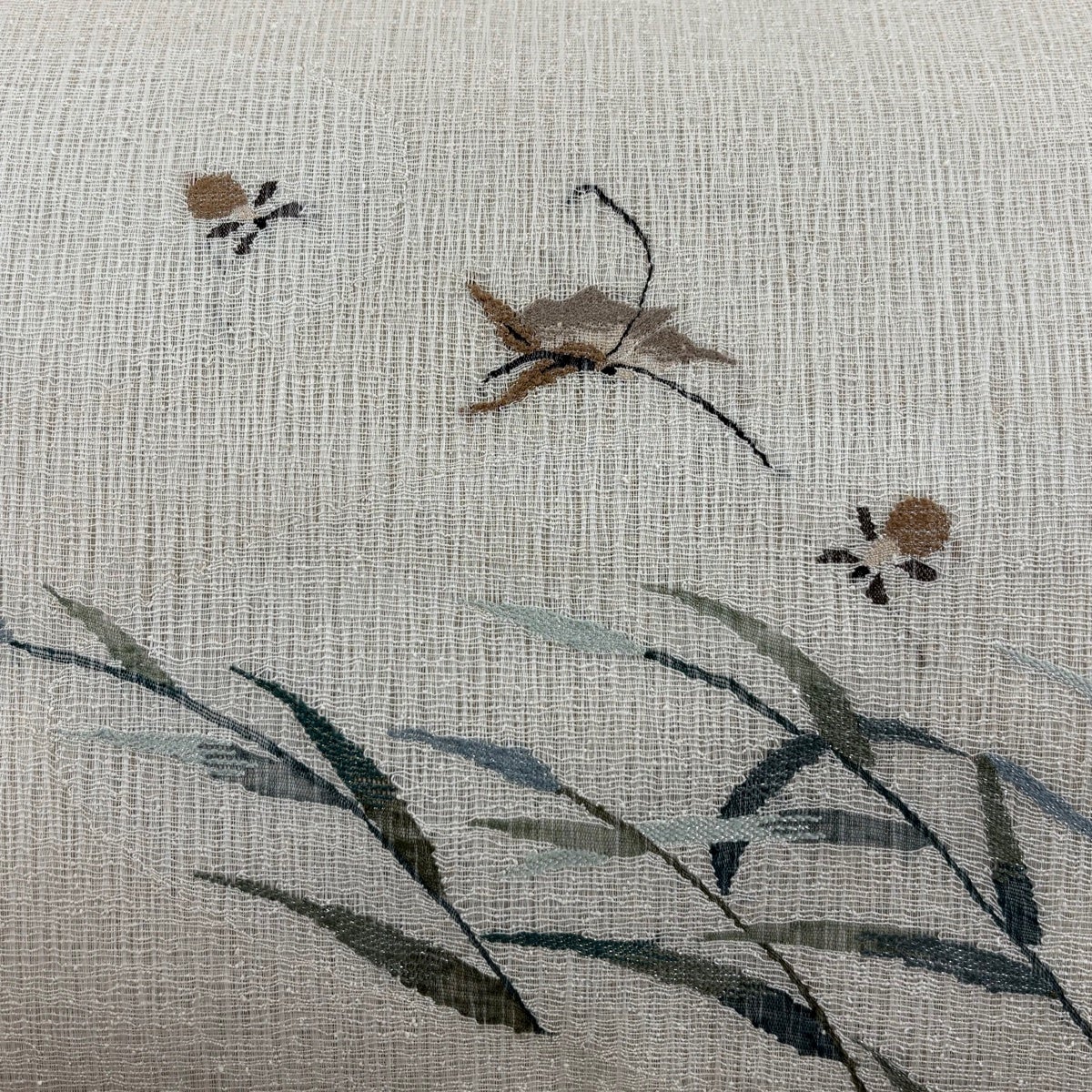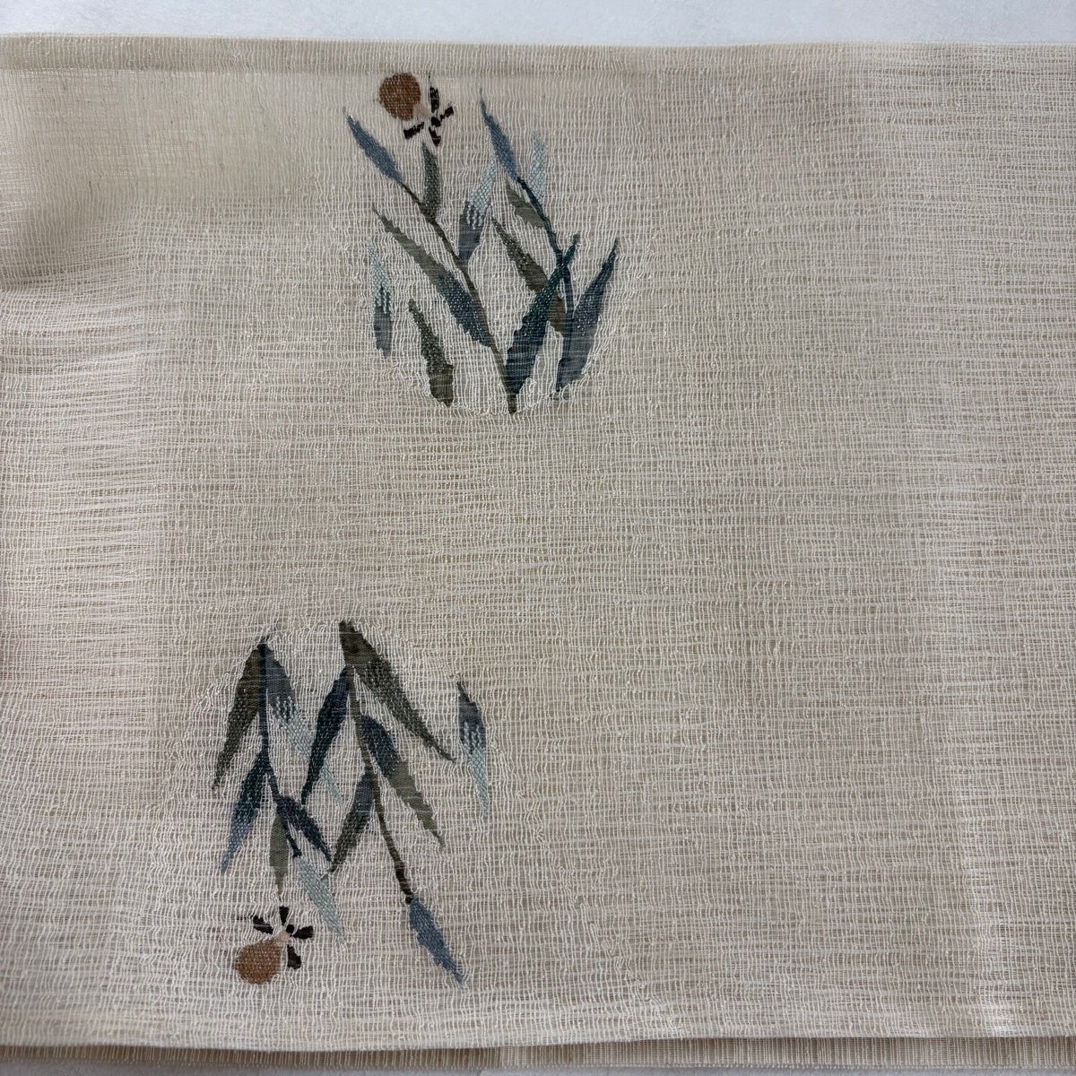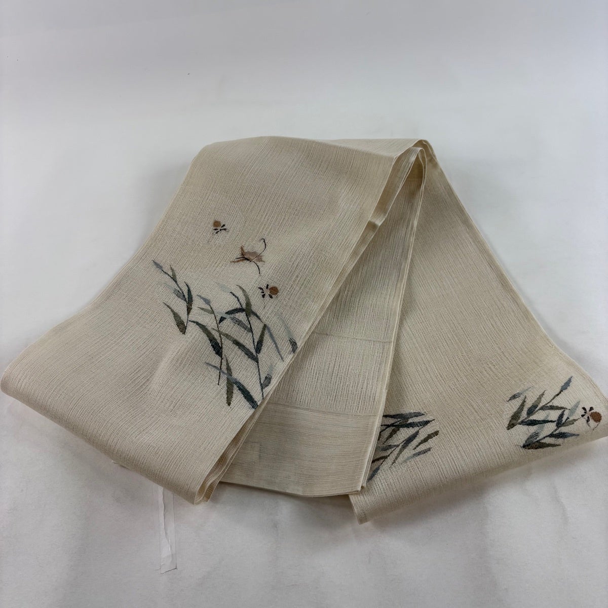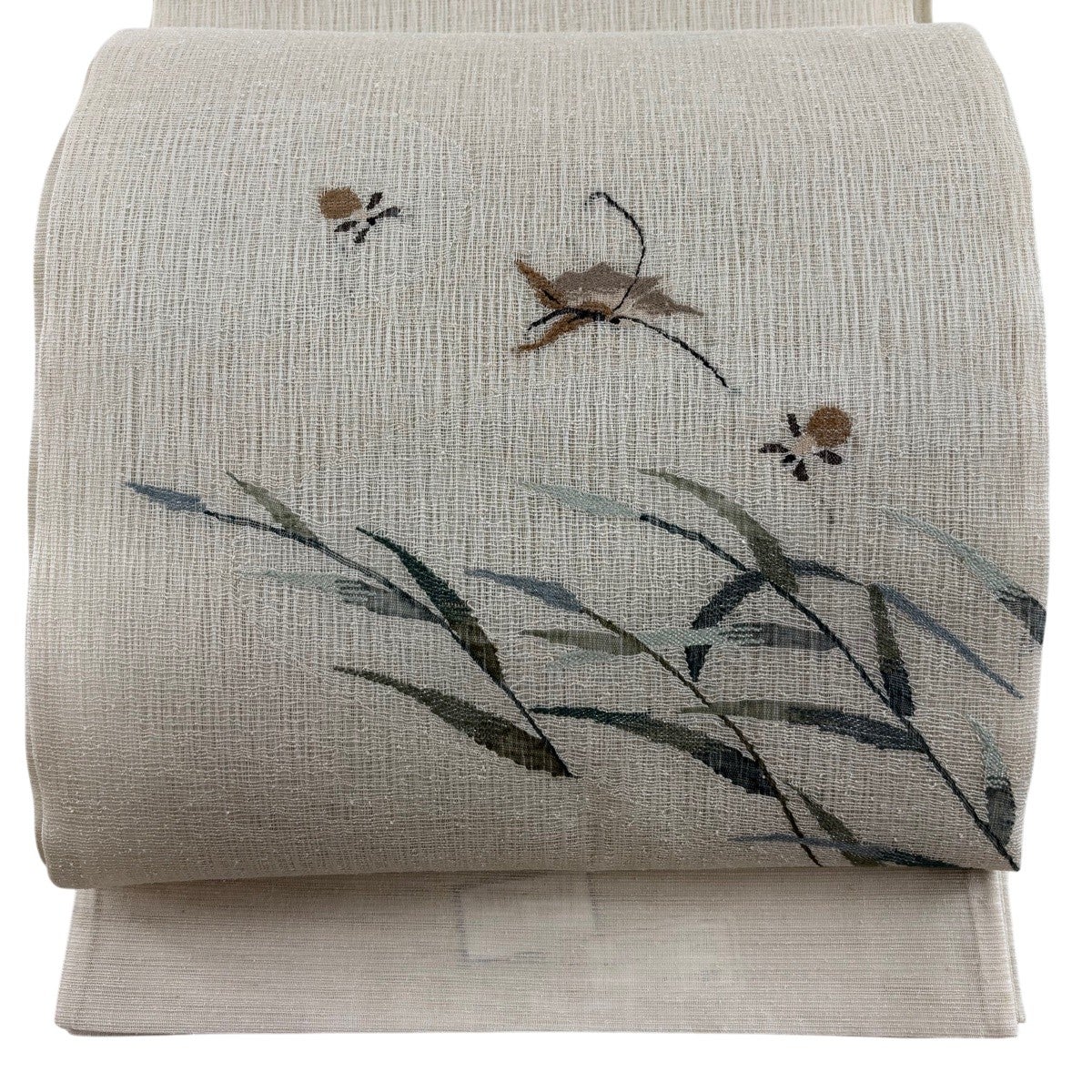 名古屋帯 秀品 夏帯 絽 桔梗 流水 金銀糸 箔 クリーム 正絹