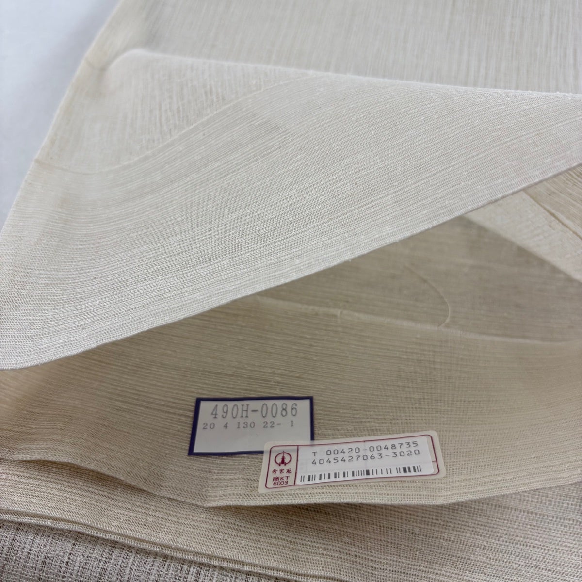 名古屋帯 秀品 夏帯 八寸名古屋帯 松葉仕立て 縞 幾何学模様 金糸 クリーム 正絹