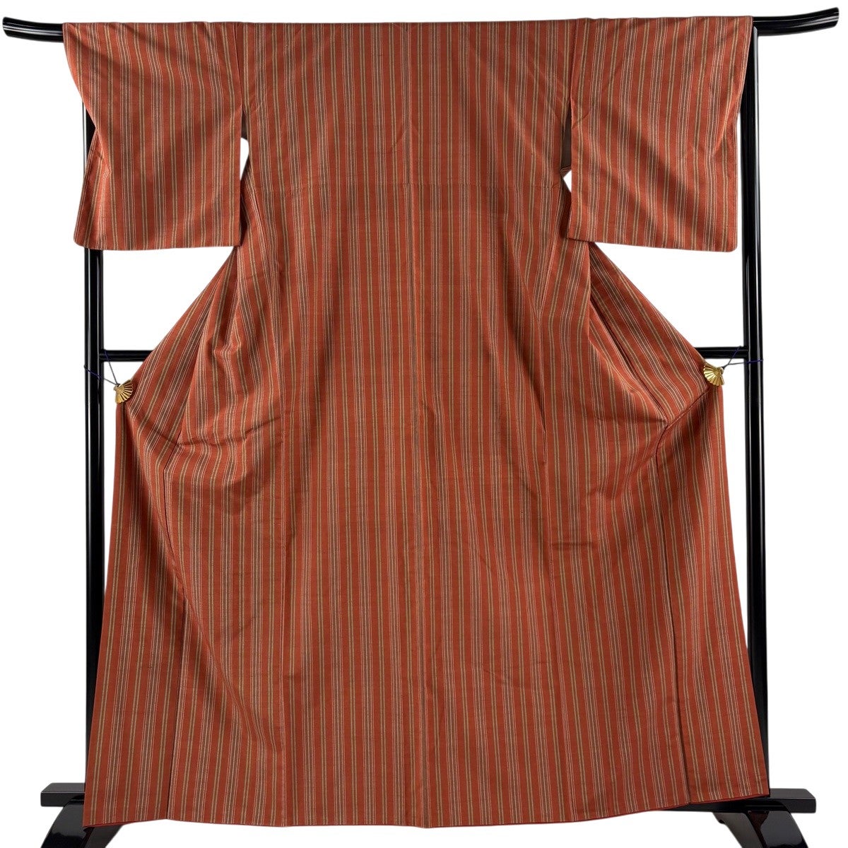 道中着 身丈95cm 裄丈68cm L 和装コート 斜縞 赤茶 正絹 秀品