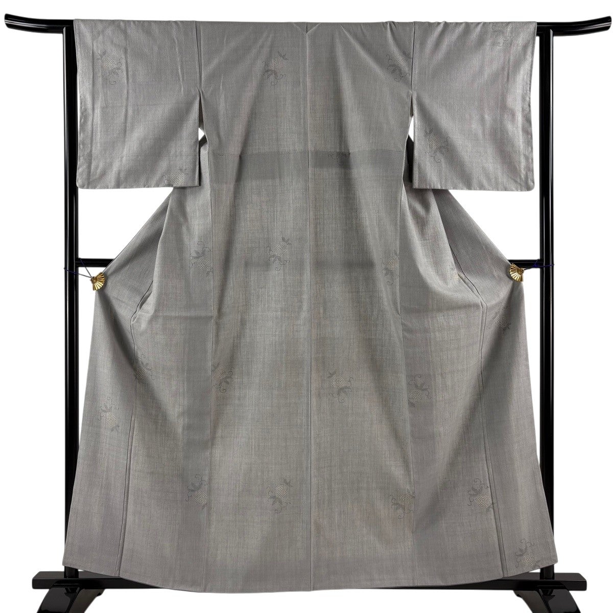 小紋 身丈164.5cm 裄丈63cm S 袷 紬地 花唐草 灰色 正絹 秀品