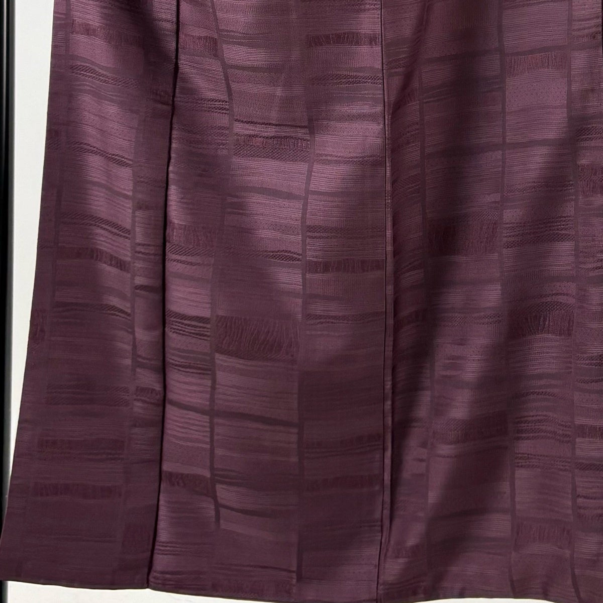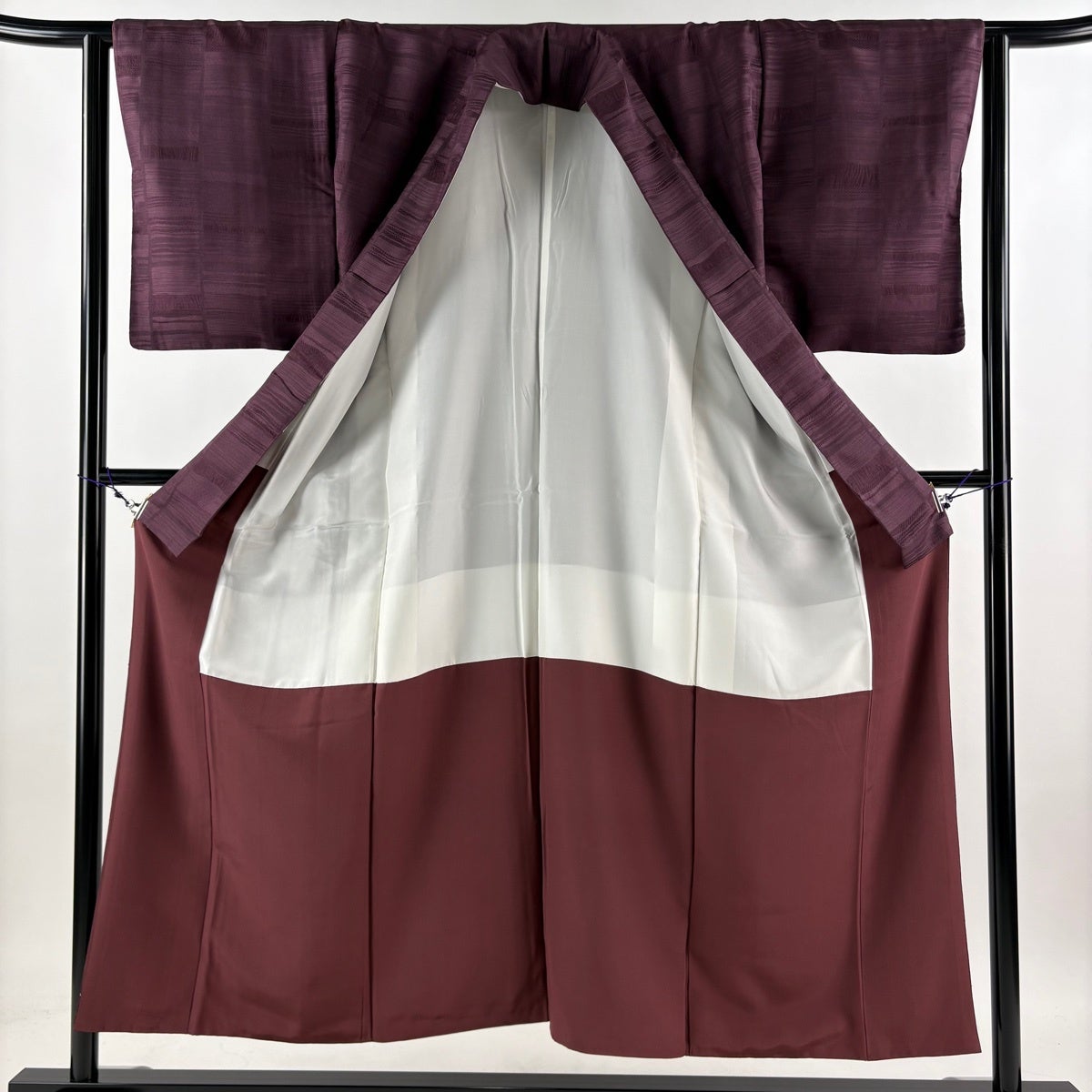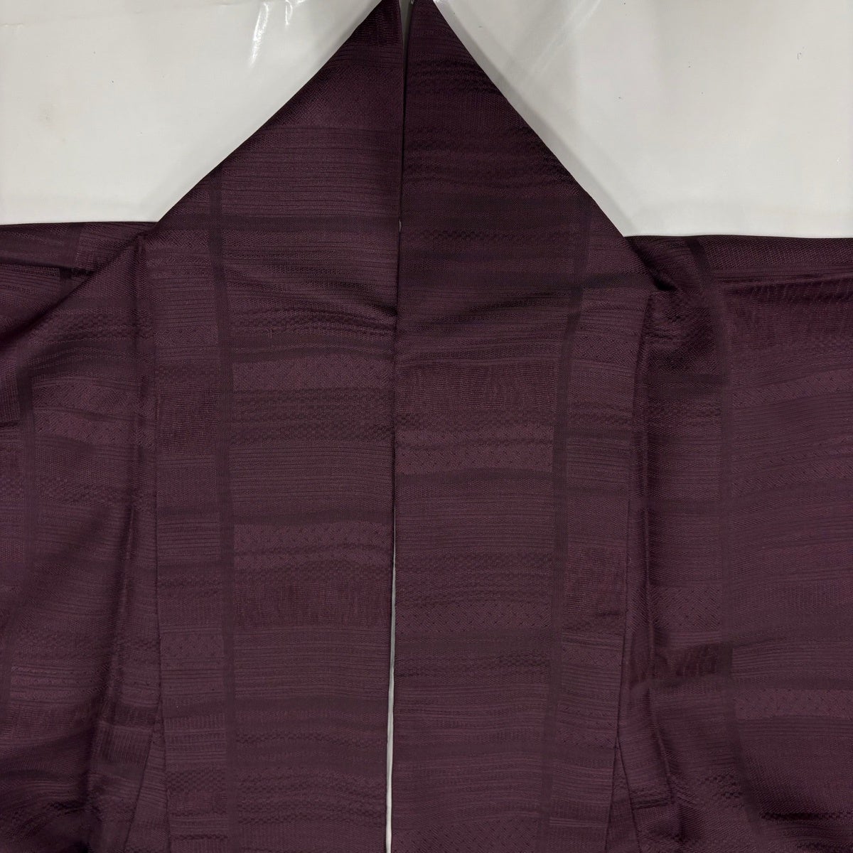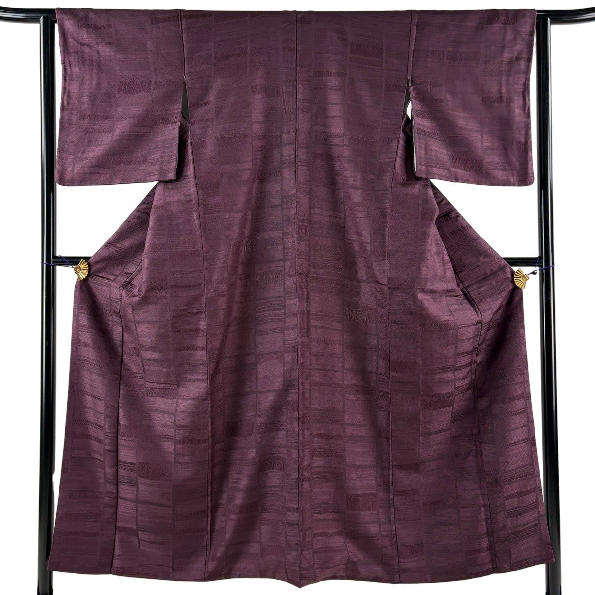 【美品】 お召 身丈153cm 裄丈63cm S 袷 縞 幾何学模様 紫 正絹 逸品