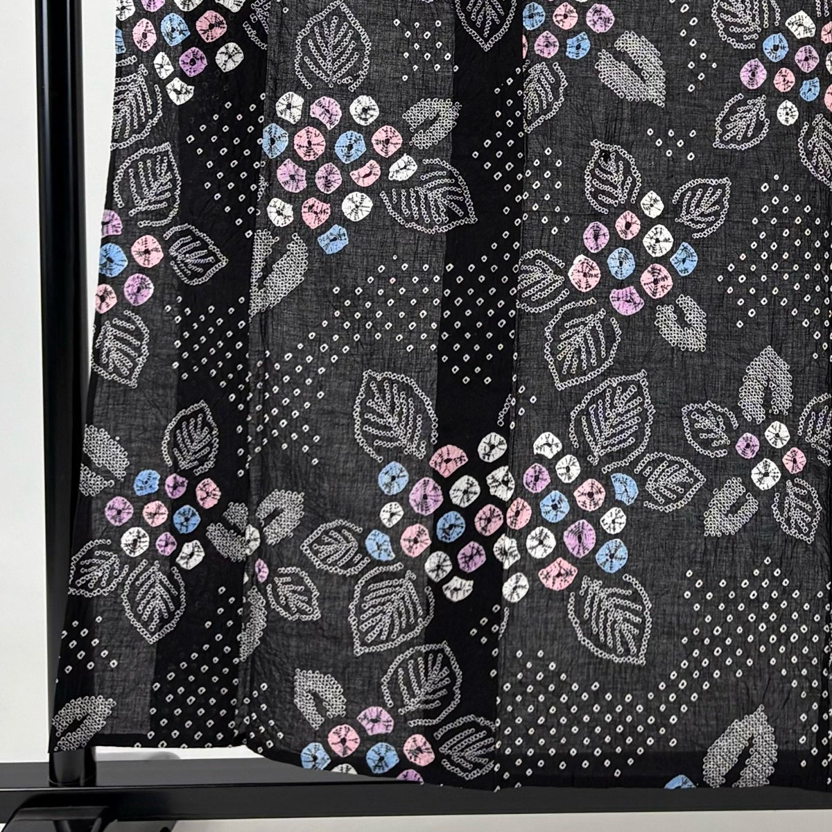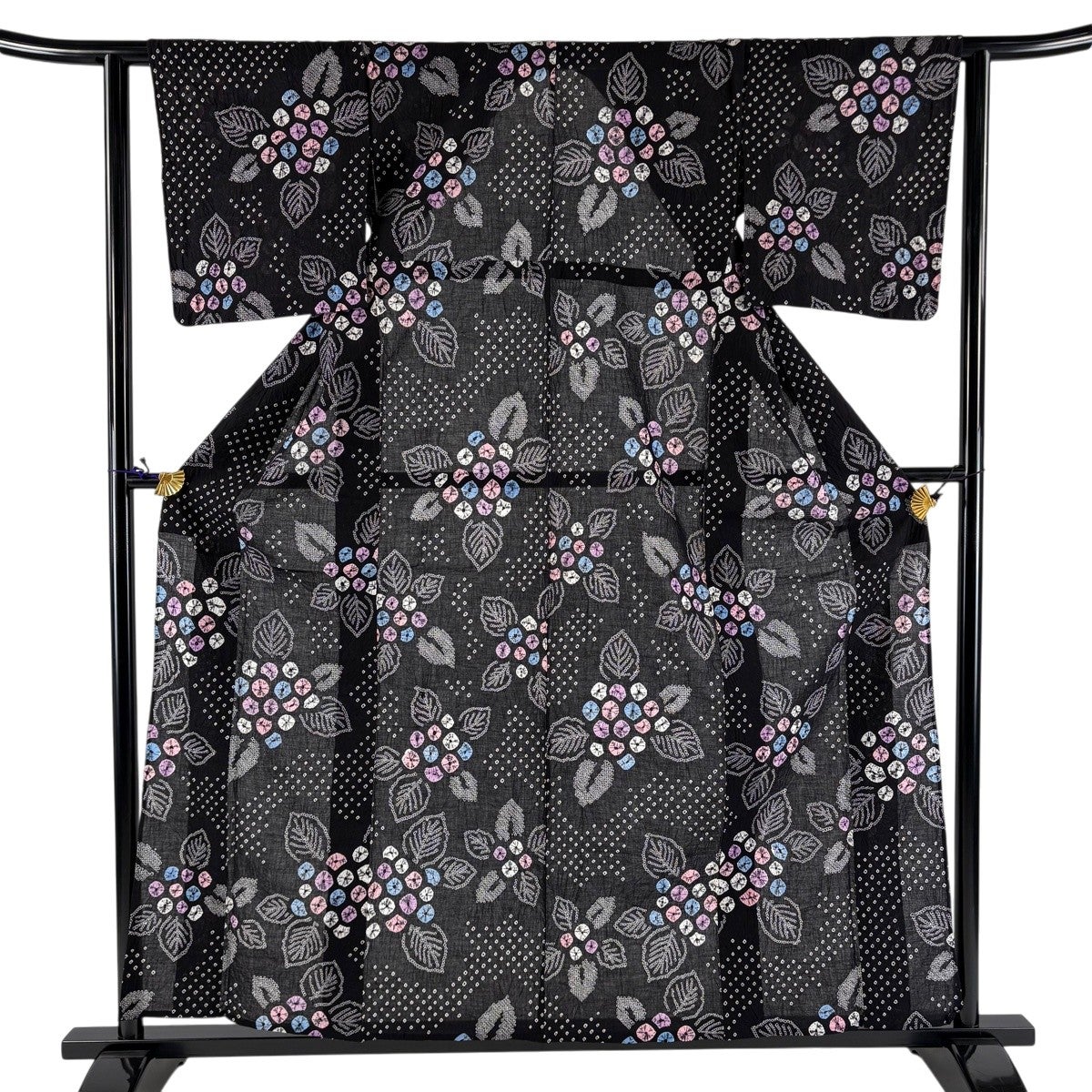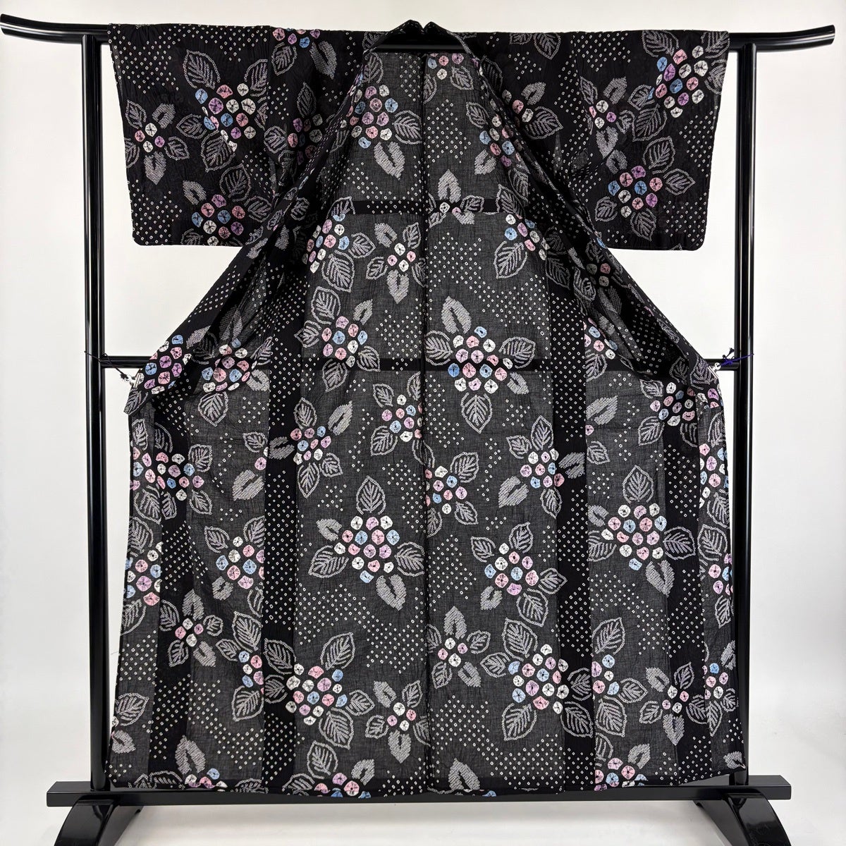 【美品】 浴衣 身丈157.5cm 裄丈62cm S 絞り浴衣 紫陽花 黒 綿 名品