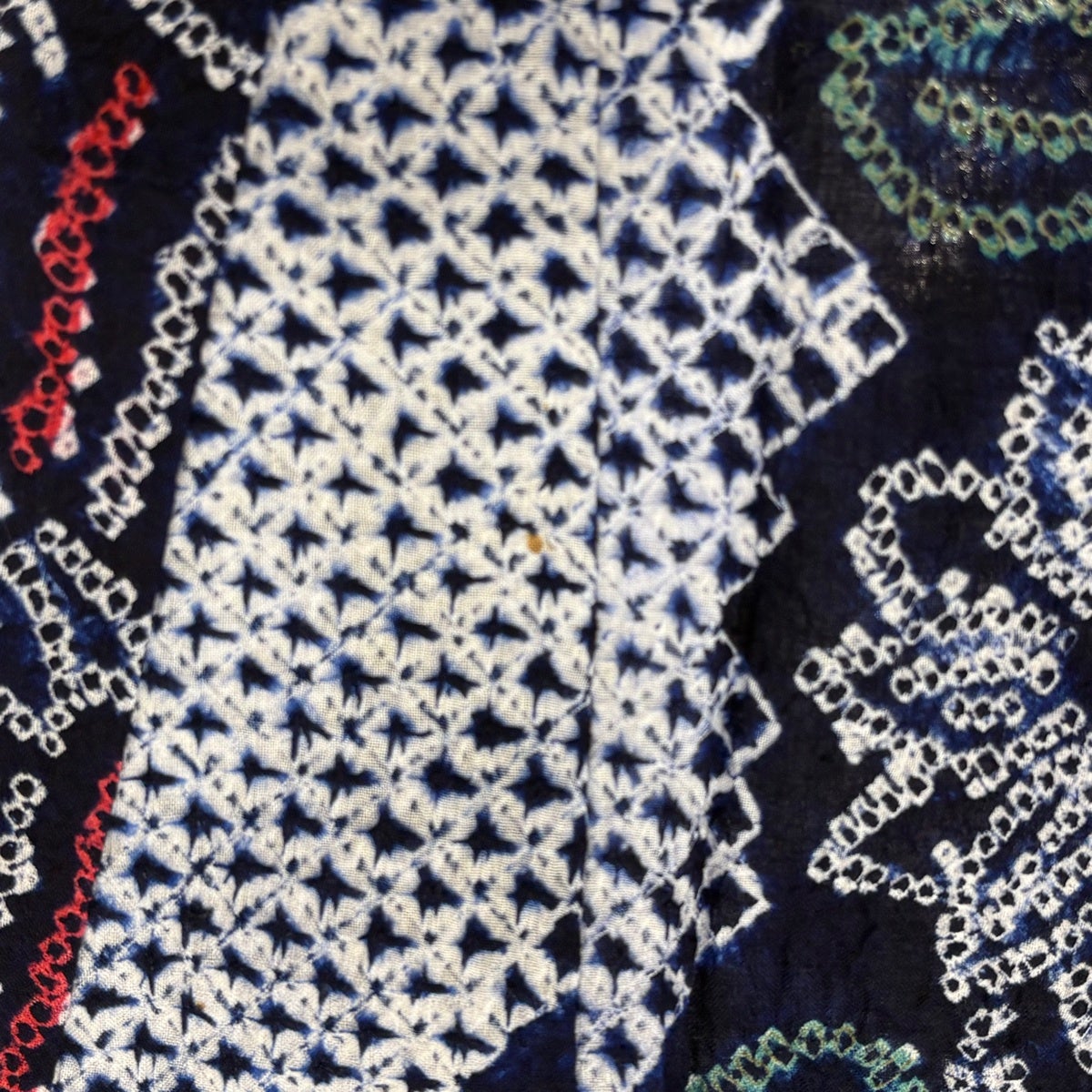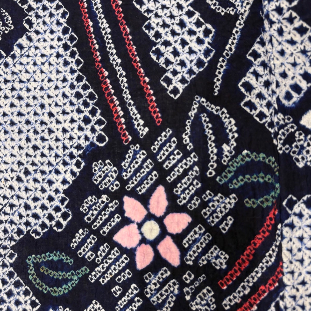 【美品】 浴衣 身丈148.5cm 裄丈63cm S 絞り浴衣 草花 紺色 綿 名品