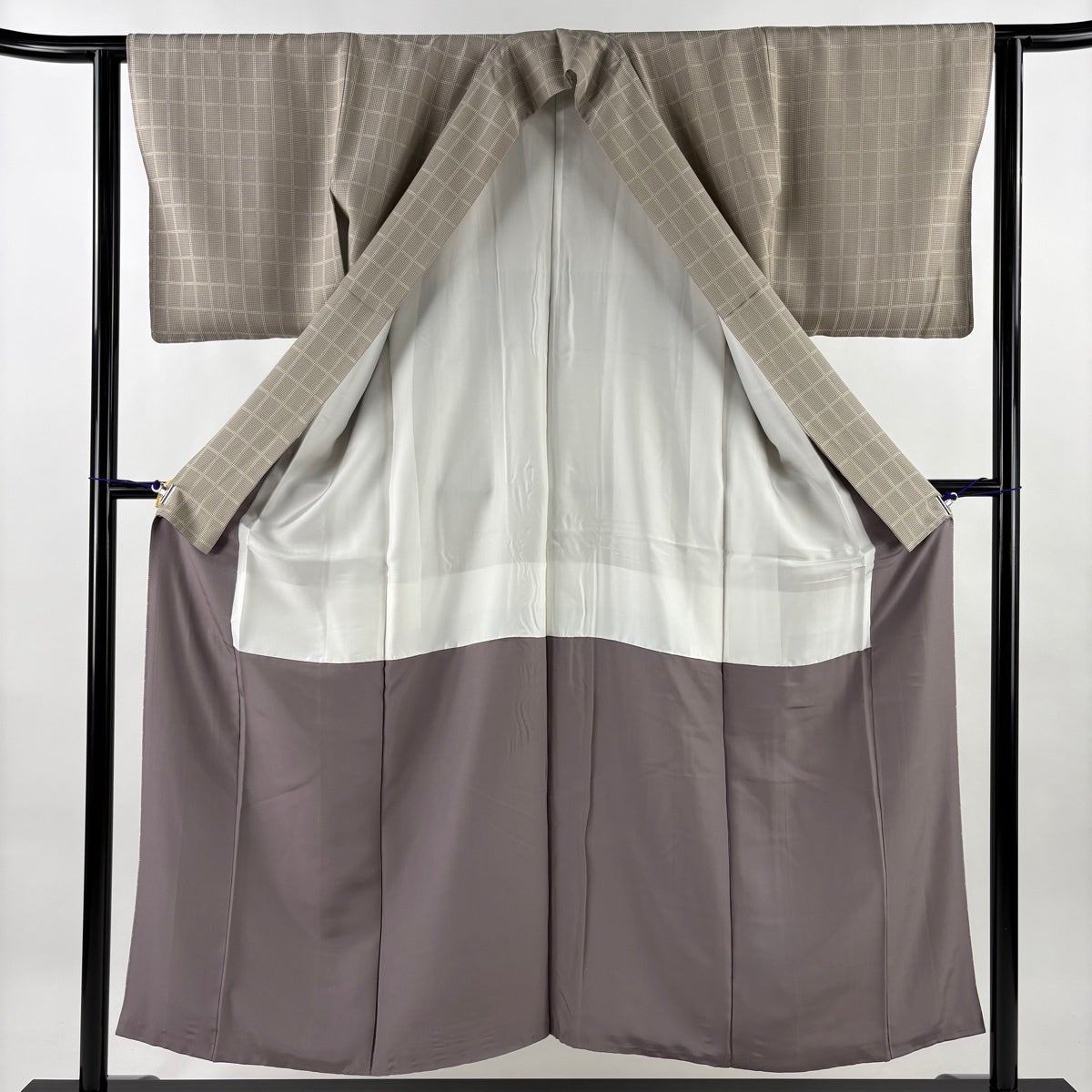 小紋 身丈151cm 裄丈63cm S 袷 落款あり 幾何学模様 灰紫 正絹 秀品